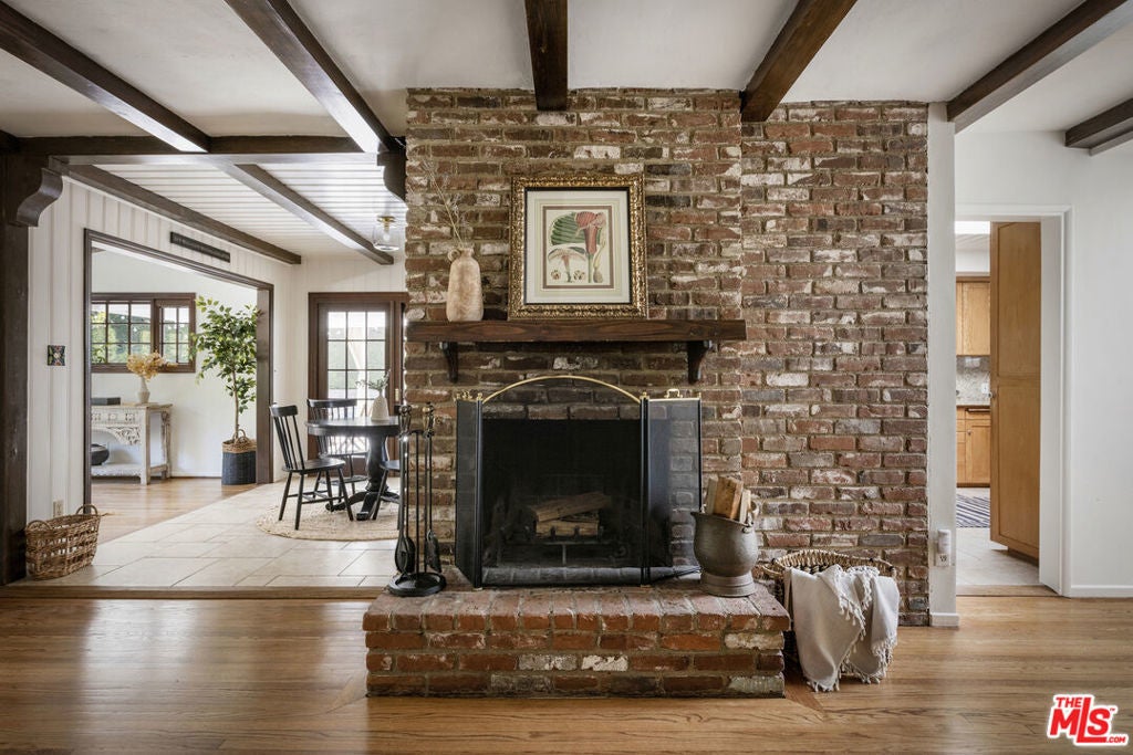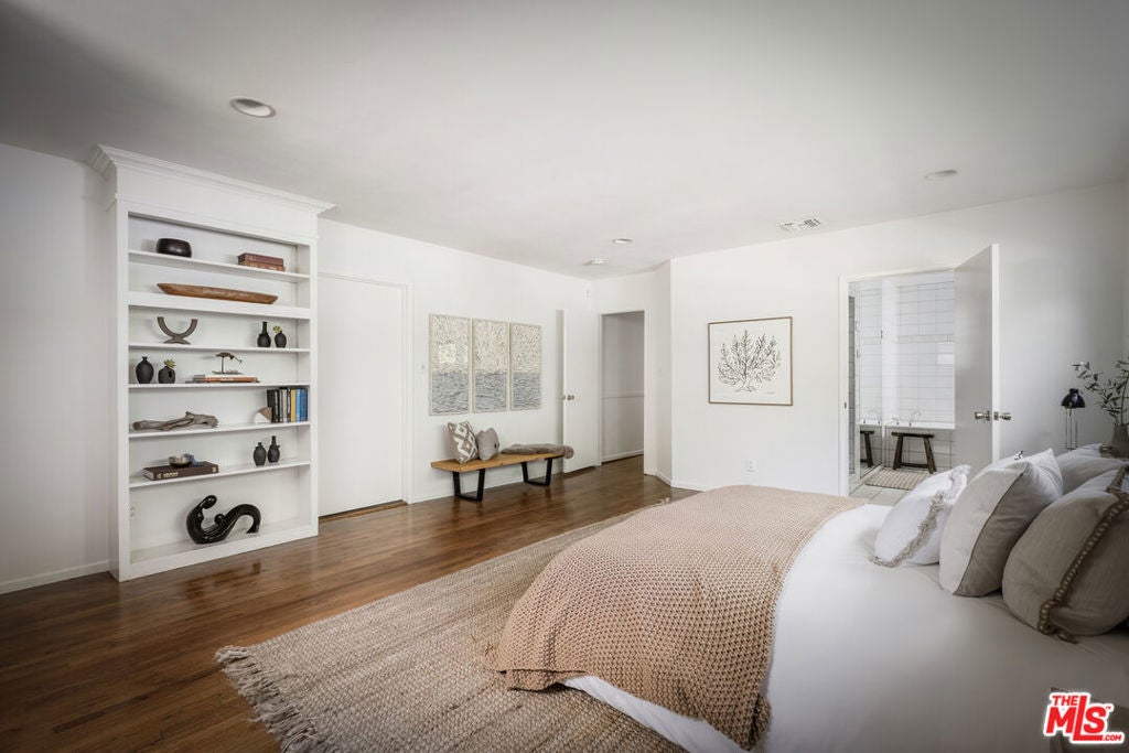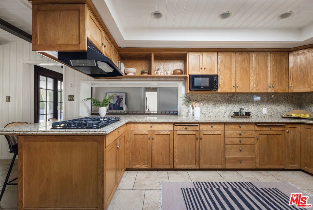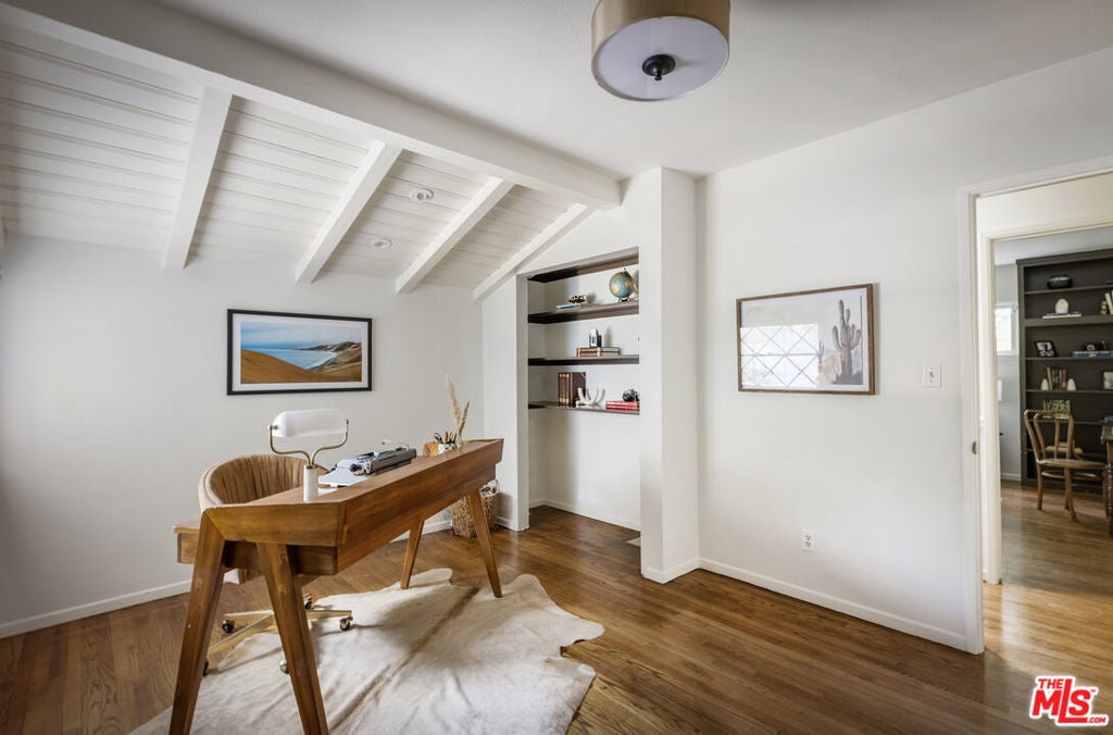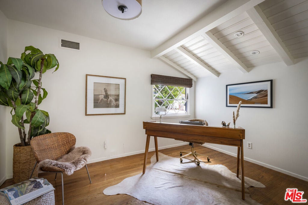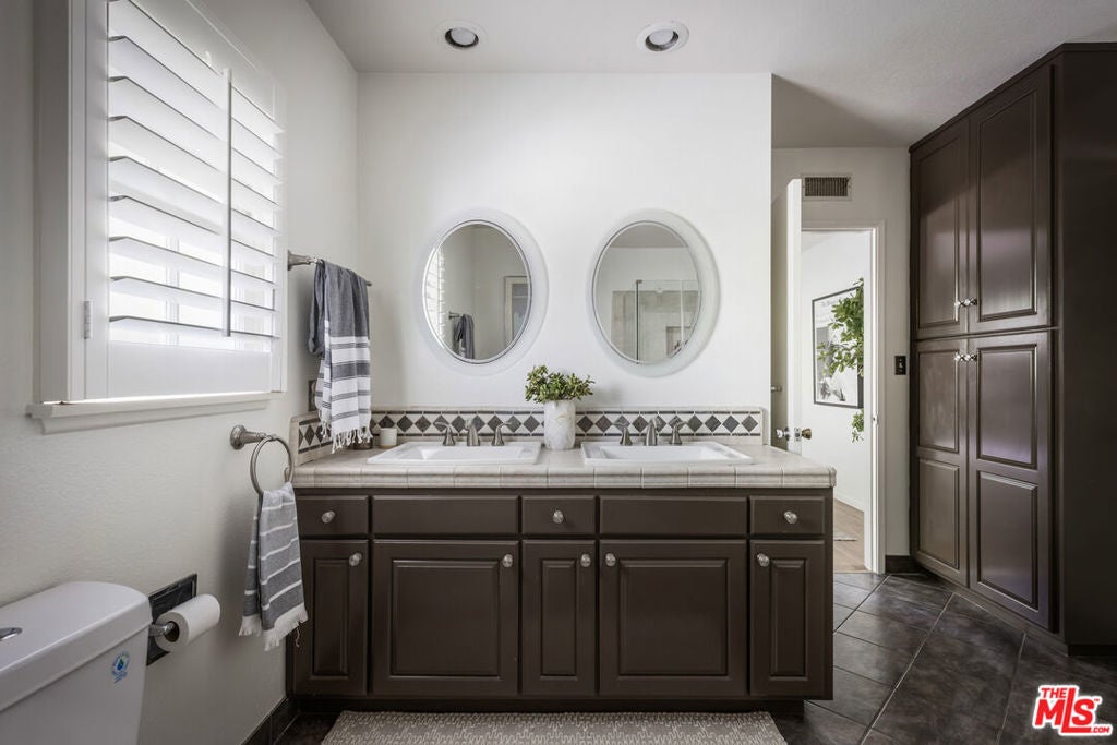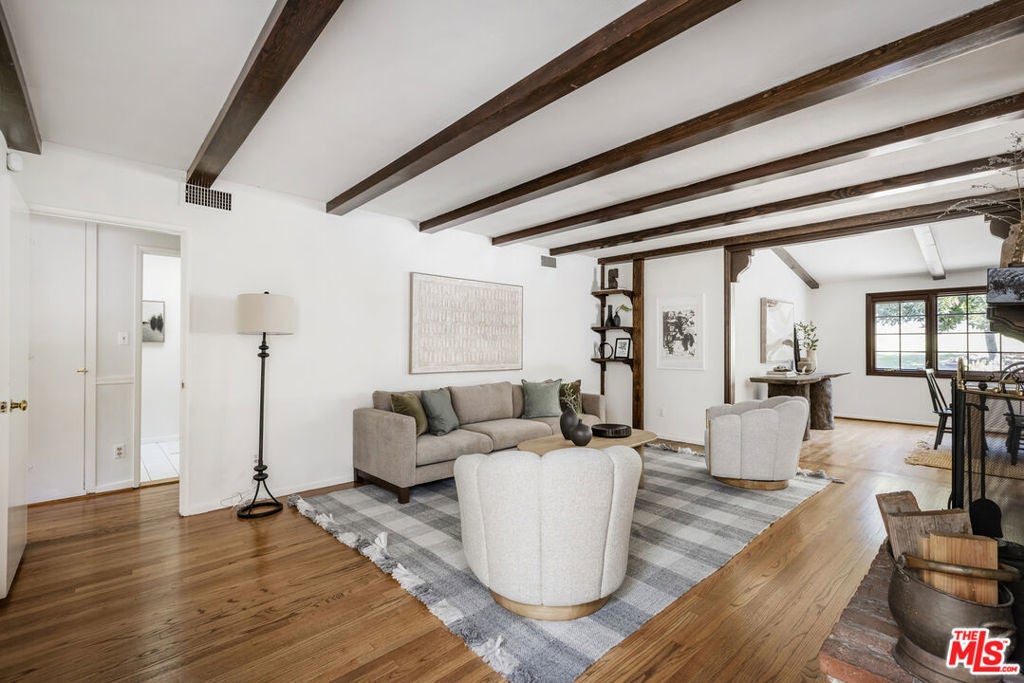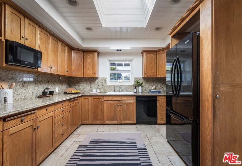 Nestled in the heart of Tarzana, just south of Ventura Blvd, this 5-bedroom, 4-bathroom Ranch-style pool home is a rare gem - lovingly maintained by the same family for nearly 40 years. Tucked behind a white picket fence, it offers the perfect blend of open-concept living, comfort, and incredible indoor-outdoor entertaining. Step inside this 1956 beauty and discover a cozy living room with beamed ceilings, a brick fireplace, and rich hardwood floors throughout. The oversized formal dining room, bathed in natural light from multiple exposures, easily accommodates dinner parties of eight guests or more, with views of the lush, park-like backyard and pool. The heart of the home is a gourmet eat-in kitchen featuring granite countertops, high-end appliances, and custom cabinetry with abundant storage. Just off the kitchen, a spacious family room with pitched, beamed ceilings is flanked by glass sliding doors on both sides, creating seamless flow to the expansive outdoor living areas. Positioned behind the family room is a versatile guest suite with its own full bathroom- ideal for multigenerational living - along with a dedicated laundry room with side-by-side washer and dryer, and direct access to the two-car garage. On the opposite side of the home, the primary suite offers a peaceful retreat with a large walk-in closet and a spa-like en suite bathroom featuring a soaking tub. Two additional generously sized bedrooms share a full Jack-and-Jill bathroom with both a separate shower and tub. A charming fifth bedroom, currently used as an office, plus an additional full bathroom in the hallway, completes this enviable floorplan. Outside, the expansive backyard (nearly 20,000 SF) is a private oasis - fully enclosed by mature trees and hedges. At the far end of the yard, you'll discover an oversized, gated pool and spa with a generous shallow area, perfect for kids to splash and play all summer long. An outdoor kitchen with built-in storage, multiple covered dining and lounging areas, and ample room for a basketball hoop or pickleball court complete this entertainer's dream yard. Additional highlights include new designer lighting, new carpeting in primary closet, fresh interior painting, a two-car garage with an EV charger, and a location just moments from some of the San Fernando Valley's best restaurants and shops such as Scratch Bar & Kitchen, Taj Mahal, Cici's Cafe, Asal Bakery, The Brothers Sushi, Casalena, Sadaf, Borekas Sephardic Pastries, Anajak Thai Cuisine, and Osteria La Buca. This special enchanting Tarzana retreat offers space, privacy, and style in one of the Valley's most desirable pockets. 2011 panels will be owned by the owner in 2031. The second group of panels can be purchased for $2700 in 2046. There are monthly payments of $127.81 and $171.50.