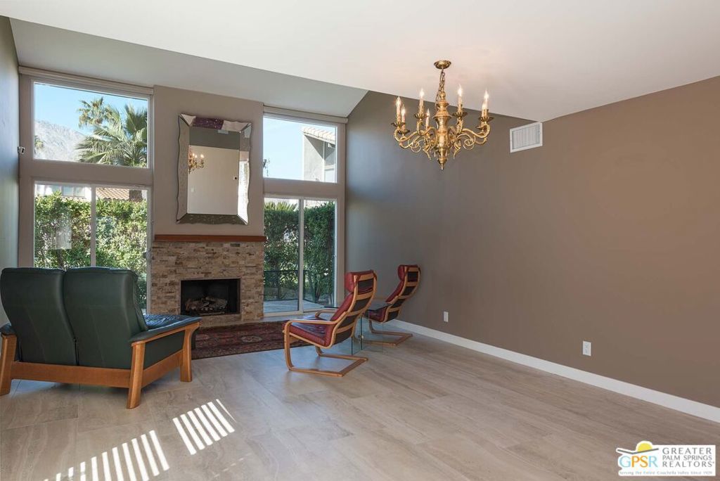 Beautifully remodeled Condo/Townhome in the Sunflower complex in central Palm Springs. This 1,690 sq ft, 3 Beds 3 Baths two-story condo recently went through an extensive renovation that includes windows, flooring, updated kitchen and bathrooms. New dual pane windows and sliding doors with window coverings bring in incredible natural light. Living/dining area features magnificent mountain views. Vaulted ceilings, fireplace and dual sliding doors lead to the patio surrounded by evergreen shrubs. The downstairs primary bedroom is en-suite with large walk-in shower and direct access to private walled patio with retractable shade. Upstairs is a second bedroom that includes its own full bath, walk in closet and tiled balcony with spectacular mountain views. A third guest bedroom or office is located on the main level plus an updated guest bath. Enclosed one car garage with an adjoining carport. Washer/Dryer included. Community pool and spa. Low HOA's on land you own.