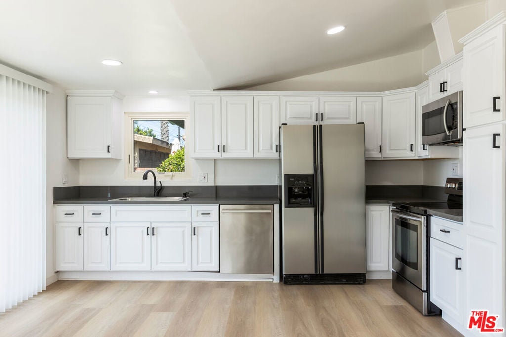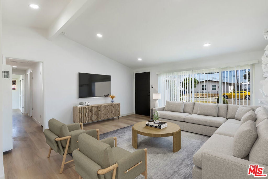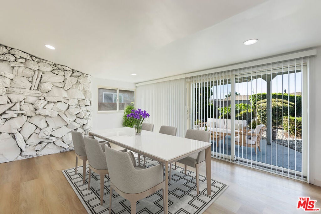 Welcome to 424 Markton - on the market for the first time in nearly 70 years! Situated on a cul de sac street, this light and bright 3-bedroom, 1.5-bathroom home has been thoughtfully updated throughout and is truly move-in ready. As you enter, you're welcomed into a spacious living room highlighted by high vaulted ceilings and a unique Palos Verdes Stone accent wall that adds character and warmth. The open floor plan flows seamlessly from the living room into the dining/kitchen area, which is complete with new flooring, recessed lighting, stainless steel appliances, and updated cabinetry. Through the hallway, you'll find a powder room, a convenient laundry area, a primary bedroom with outdoor access, and two additional bedrooms centered around a full bathroom. Outside, enjoy a beautifully landscaped backyard with a covered deck area and plenty of space to dine, entertain and lounge.