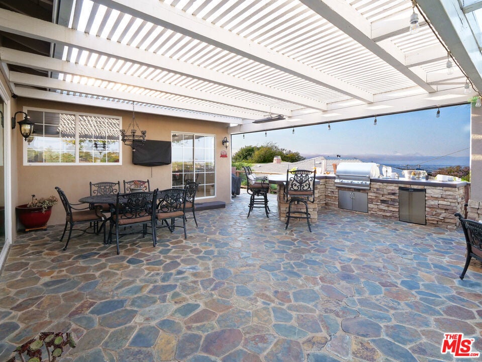 Tucked away in peaceful seclusion, this uniquely unassuming home is a true sanctuary offering panoramic views of the city skyline, distant mountains, and sparkling coastline. Thoughtfully updated and masterfully designed, every detail of the home is crafted to maximize the natural beauty of its surroundings while preserving a sense of privacy and effortless indoor-outdoor living. Light, airy, and functionally elegant, the home's open floor plan flows gracefully from one space to the next. The kitchen, complete with a cozy breakfast nook, overlooks city views and opens seamlessly into a formal dining room and an expansive family room. Entertain with ease at the built-in wet bar, or showcase your collection in the walk-in wine refrigerator. Oversized sliding glass doors lead to a one-of-a-kind backyard oasis that must be experienced to be fully appreciated. A wide and welcoming hallway leads to the bedroom wing, where the primary suite serves as a peaceful retreat. Featuring dual walk-in closets, a private bath, and breathtaking views, it's the perfect blend of comfort and luxury. Outdoors, the huge backyard is a haven for relaxation and entertaining. Multiple seating areas provide intimate spaces for conversation around the fire pits or beside a striking stone fireplace, all set against sweeping vistas. A shaded pergola with a mounted big screen TV invites guests to gather and unwind in comfort. The built-in BBQ is perfectly placed so the host can stay in the heart of the action while taking in views of Kings Harbor. A charming rustic bar, custom cornhole court and lush, thoughtfully curated landscaping complete this incredible space. Even the garage is masterfully designed and organized - a true extension of the home's thoughtful craftsmanship. Built-in custom cabinetry lines the walls, offering plentiful storage without clutter. Durable epoxy floors lend a clean, polished finish, while a dedicated laundry area has been seamlessly integrated for optimal function and flow. It's as practical as it is refined. This hidden gem is more than a home, it's a lifestyle, offering serenity, beauty, and connection in one extraordinary package conveniently located to shopping, dining, entertainment and the best the Palos Verdes Peninsula has to offer including the Palos Verdes Golf and Tennis Club, The Rolling Hills Country Club, Los Verdes Golf Course and Terranea Resort.