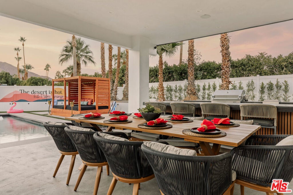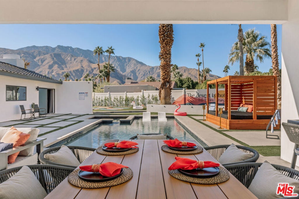 Welcome to The Glam Palms, where resort living meets modern design in the heart of Palm Springs. This fully furnished 5-bedroom, 3-bath luxury home is an established and highly rated short-term rental with a proven income record equally suited for full-time living, hybrid use, or continued STR operation. Located in a desirable neighborhood close to Uptown and the Design District, the home showcases a stunning outdoor oasis with heated pool and spa, private barrel sauna, mini golf course, firepit lounge, and multiple daybeds for sun or shade. An outdoor kitchen with BBQ, ping pong, and alfresco dining areas complete the entertainer's dream setup.Inside, bold Palm Springs flair blends with upscale finishes: open-concept living and dining spaces, a modern chef's kitchen, and vibrant designer touches throughout. The IG-worthy bar and lounge, custom murals, and seamless indoor-outdoor flow make this home an unforgettable retreat. Recent updates include smart systems, upgraded pool equipment, and turnkey furnishings. The Glam Palms presents a rare opportunity to own a high-yield, design-forward property in one of California's most iconic resort markets.