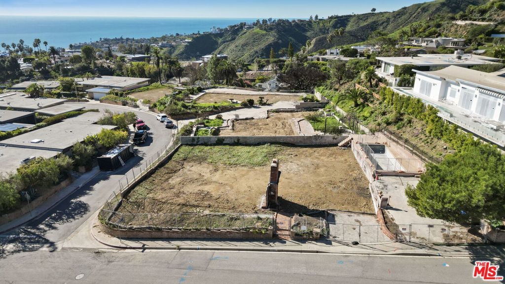 High atop the Marquez knolls, this large, mostly flat lot features spectacular sweeping views of the Santa Monica mountains, the city, and the ocean including the Queens Necklace. The original house was 3,989 SF, allowing for a 4,388 SF expedited permit rebuild (Tax record SF inaccurate, CO's with SF provided). With many of the neighboring homes still standing, the immediate surroundings are largely untouched by the fires, and the surrounding topography allows for a unique, two story rebuild opportunity without obstructing neighbors' views (subject to Marquez Knolls CC&Rs buyer to verify; marquezknolls.org). Phase 1 and Phase 2 environmental remediation complete and the lot includes an intact, in-ground pool, two driveway curb cuts, and intact fireplace. For setback calculations, frontage of the property is on Glenhaven Dr. Located within the Calvo / categorical exclusion area and not subject to coastal commission. Please note, pool has not been inspected. Buyer to verify all information.