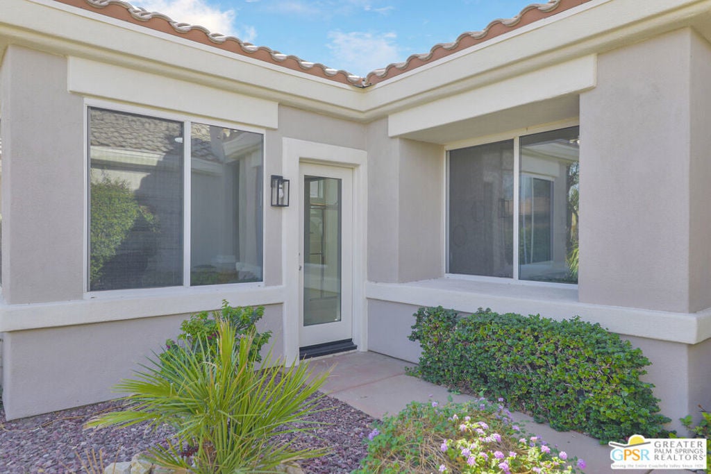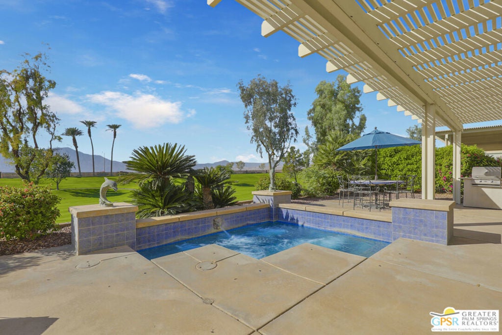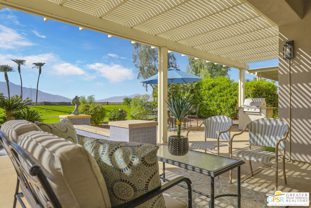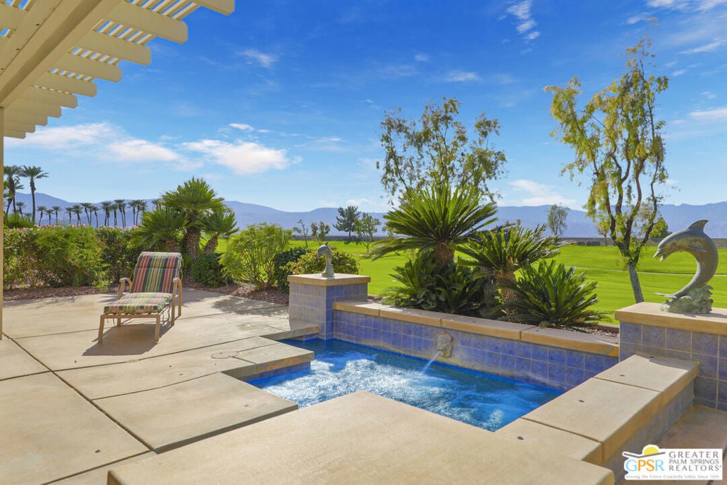 It's the most wonderful time of year in the desert...sunny days, crisp evenings, and endless blue skies set the tone for a peaceful and relaxing lifestyle. Positioned along the golf course, this beautifully REMODELED SINGLE STORY HOME blends modern comfort, style, and seamless indoor-outdoor living. Inside, high ceilings and an open floor plan create a bright, inviting atmosphere. In the kitchen, a skylight bathes the space in natural light, drawing attention to the quartz countertops, waterfall island, generous cabinetry, and cozy breakfast nook. The great room transitions effortlessly for dining and entertaining, with wide sliders framing PANORAMIC FAIRWAY AND MOUNTAIN VISTAS. Three bedrooms and two updated baths in the main home provide comfort and privacy. Set apart on its own side of the home, the spacious primary suite offers stunning mountain views, an ensuite bath, and generous closet space, while the guest rooms are located in their own wing ideal for family and friends. A detached ONE BED/ONE BATH CASITA adds wonderful versatility when hosting your loved ones and grandkids or using it as a private office retreat...the possibilities are endless. A laundry room with ample storage and a two car garage enhances daily convenience. Outdoor living shines with a heated spool, BBQ, and expansive patio...perfect for peaceful mornings, sun-soaked afternoons, and evenings beneath star-filled skies. Residents of Sun City Palm Desert enjoy world-class amenities, including two championship golf courses, three clubhouses, dining venues, fitness centers, pools, tennis and pickleball courts, dog parks, and scenic walking trails. Nearby shopping, dining, and everyday conveniences further enhance the lifestyle. Thoughtfully updated and warmly inviting, this home offers effortless desert living...whether full-time or seasonal...with plenty of room to make lasting memories with those who matter most. It's time to call this home.