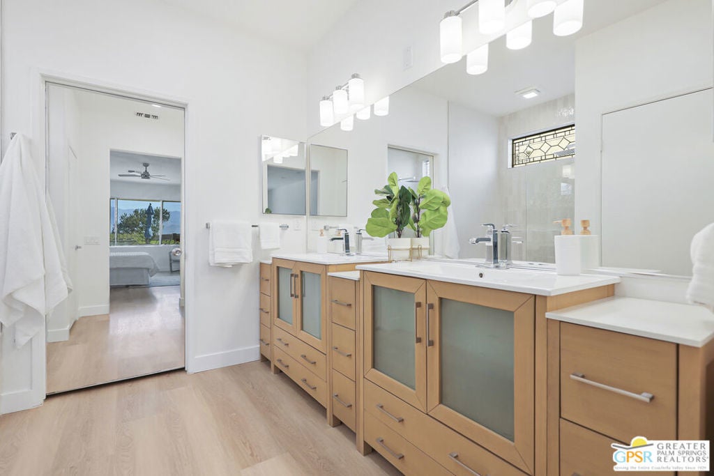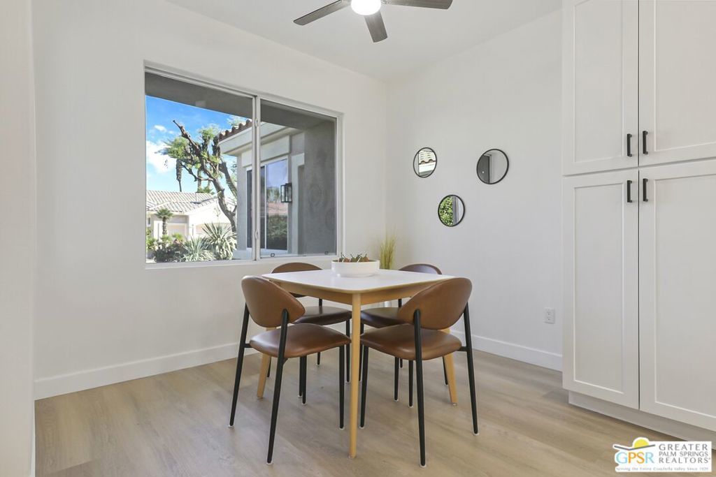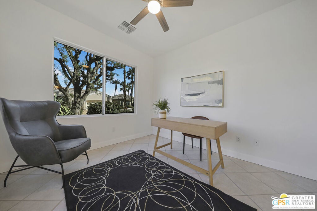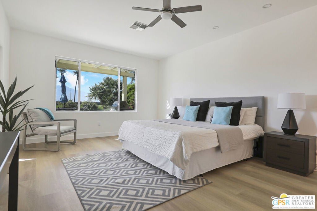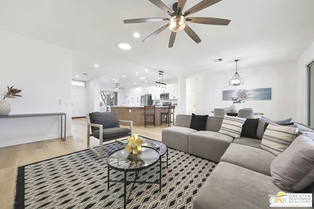 It's the most wonderful time of year in the desert...sunny days, crisp evenings, and endless blue skies set the tone for a peaceful and relaxing lifestyle. Positioned along the golf course, this beautifully REMODELED SINGLE STORY HOME blends modern comfort, style, and seamless indoor-outdoor living. Inside, high ceilings and an open floor plan create a bright, inviting atmosphere. In the kitchen, a skylight bathes the space in natural light, drawing attention to the quartz countertops, waterfall island, generous cabinetry, and cozy breakfast nook. The great room transitions effortlessly for dining and entertaining, with wide sliders framing PANORAMIC FAIRWAY AND MOUNTAIN VISTAS. Three bedrooms and two updated baths in the main home provide comfort and privacy. Set apart on its own side of the home, the spacious primary suite offers stunning mountain views, an ensuite bath, and generous closet space, while the guest rooms are located in their own wing ideal for family and friends. A detached ONE BED/ONE BATH CASITA adds wonderful versatility when hosting your loved ones and grandkids or using it as a private office retreat...the possibilities are endless. A laundry room with ample storage and a two car garage enhances daily convenience. Outdoor living shines with a heated spool, BBQ, and expansive patio...perfect for peaceful mornings, sun-soaked afternoons, and evenings beneath star-filled skies. Residents of Sun City Palm Desert enjoy world-class amenities, including two championship golf courses, three clubhouses, dining venues, fitness centers, pools, tennis and pickleball courts, dog parks, and scenic walking trails. Nearby shopping, dining, and everyday conveniences further enhance the lifestyle. Thoughtfully updated and warmly inviting, this home offers effortless desert living...whether full-time or seasonal...with plenty of room to make lasting memories with those who matter most. It's time to call this home.