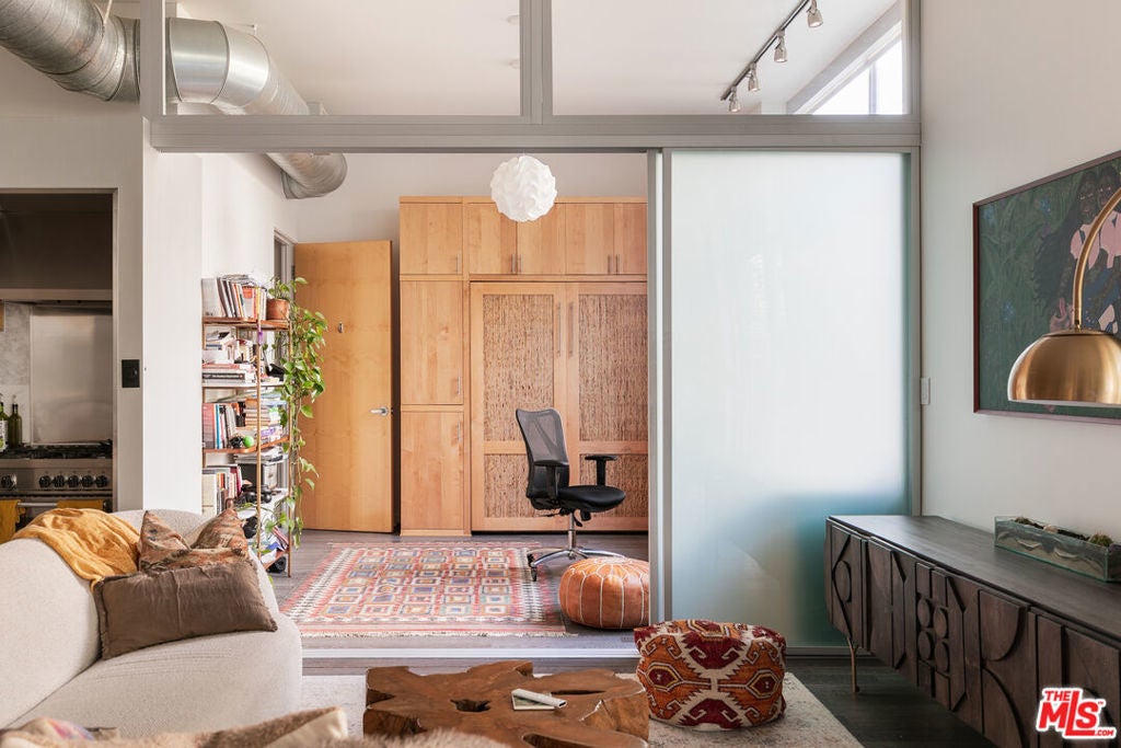 Now offered at a fresh price, delivering incredible value in a prime location! Located in the vibrant Marina del Rey Arts District, this stunning 2-bed, 2-bath loft blends modern design with a warm, organic feel. Set in a coveted courtyard position within Gallery Lofts, the home showcases soaring 11-foot ceilings, expansive floor-to-ceiling windows, and oversized Fleetwood sliders that open onto a generous 33-foot balcony enveloped by trees. The result is an airy, private retreat with effortless indoor/outdoor living. Automatic blinds provide a refined finishing touch and easy light control. The contemporary kitchen is outfitted with stainless steel appliances and offers the option for a center island, seamlessly connecting to the dining and living areas. The spacious main bedroom features a custom walk-in closet and a spa-like bath complete with a separate shower and soaking tub. A versatile second room functions beautifully as either an office or guest suite, enhanced by a custom Murphy bed, built-ins, and sleek sliding glass doors. Additional conveniences include HVAC, in-unit laundry, two parking spaces with a dedicated EV charger, and guest parking. Enjoy thoughtfully designed outdoor spaces with a double-sided fireplace, BBQs, and lounge areas perfect for unwinding. All just minutes from neighborhood favorite, restaurants, shops, bike paths, the beach as well as Abbot Kinney and Playa Vista.