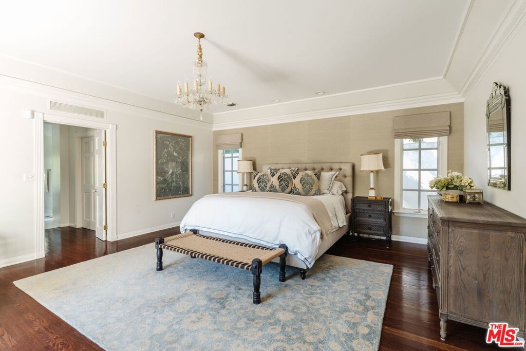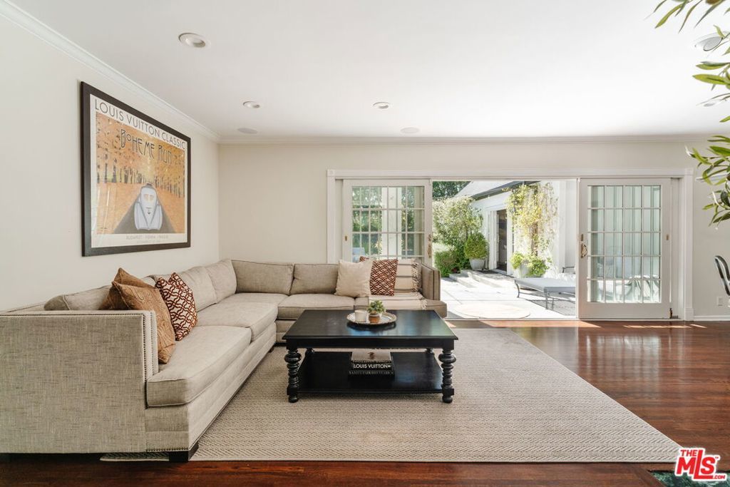 This beautiful single-story east coast traditional blends timeless architecture with modern sophistication. Located in the sought-after neighborhood of Beeman Park on a sprawling 11,421 sq.ft. lot, the home radiates classic charm and enduring elegance. Inside, refined woodworking and impeccable architectural details abound, including dental crown molding, fluted columns, wainscoting, and graceful archways. Lustrous solid hardwood floors flow throughout, enhancing the home's warmth and sophistication. The gracious formal living room features high ceilings, serene garden views, and a classic wood-burning fireplace. The elegant formal dining room is ideal for hosting memorable gatherings, while the adjoining breakfast room offers a bright and cheerful setting for casual dining. The completely remodeled kitchen combines state-of-the-art design with beautiful tile work and premium finishes, creating a space that's both functional and inspiring. The oversized family room opens through sliding French doors to the crown jewel of the home, a spectacular covered porch with ceiling heaters, fans, twinkling cafe lights, and an outdoor built-in barbecue. Perfect for entertaining, this inviting space overlooks the newly renovated pool and spa and a lush, low-maintenance lawn. The home features four bedrooms, with the fourth currently serving as a custom office or children's playroom, complete with built-in cabinetry and desks. Two secondary bedrooms boast generous walk-in closets and share a beautifully remodeled bath with elegant tile and a soaking tub. The primary suite offers a peaceful retreat with dual walk-in closets, a romantic chandelier, and a stunning spa-inspired bath featuring a Signature Hardware tub and Rohl fixtures. Sliding French doors open directly to the back patio and lawn, creating a seamless indoor-outdoor connection that invites relaxation, morning coffee al fresco, or quiet evenings beneath the trees. A separate detached gym, tucked beside the pool, is ideal for morning or evening workouts followed by a refreshing swim. The detached oversized two-car garage offers ample parking and storage. Located in the heart of Studio City, this remarkable home offers easy access to the area's best shops, restaurants, parks, and schools blending elegance, comfort, and classic California indoor-outdoor living in one of the Valley's most desirable neighborhoods.