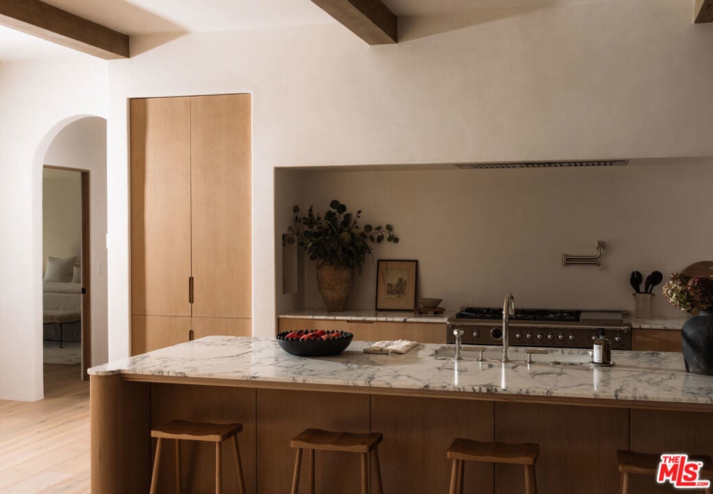 Along Hope Ranch's famed Marina Drive, where the rolling hills meet the endless Pacific, lies a contemporary Mediterranean estate that captures the essence of luxurious CA coastal living. Set upon nearly 3.5 pristine acres, this architectural jewel commands sweeping ocean views, its presence both commanding & serene, a perfect harmony of elegance & natural beauty. The estate offers 4bd, 5ba in the main residence, complemented by a separate, private guest house complete with 2bd, 1ba, living room, kitchenette, home gym, & its own secluded terrace. The grounds include a sports court, fruit-laden orchards, & a pool bordered by lush landscaping that drifts effortlessly toward the Pacific. This expansive estate is created for those who cherish beauty, privacy, & effortless luxury. Inside, every element of the 5,557-square-foot residence reflects a meticulous dialogue between old-world craftsmanship and contemporary refinement. Sunlit spaces flow effortlessly between indoor and out, anchored by steel doors, custom white oak cabinetry, and Italian marble surfaces that whisper understated sophistication. Textured veneer plaster walls, hand-hewn beams, and bespoke fireplaces evoke a sense of warmth and authenticity, every detail thoughtfully composed, every material chosen with intention.The estate offers four bedrooms and five baths (three full, two half bathrooms) in the main residence, complemented by a separate guest house, a private haven complete with two bedrooms, one bath, living room, kitchenette, home gym, and its own secluded terrace.Outdoor living here transcends leisure to become an art form. The infinity-edge pool stretches toward the horizon, seamlessly merging with the Pacific beyond. Custom pergolas and a grand pavilion, outfitted with a fireplace, bar seating, full outdoor kitchen, and wood-burning pizza oven, create an idyllic setting for sophisticated entertaining beneath the Santa Barbara sun.The primary suite is a sanctuary of repose: bifold doors open to a tranquil garden, while the spa-inspired bath features a free-standing soaking tub, dual-head marble shower, and intelligent fixtures of the highest caliber. A custom white oak dressing room and adjoining courtyard spa, complete with copper outdoor shower and limestone flooring, elevate daily rituals into moments of quiet indulgence.Beyond the residence, the estate unfolds into a private world of recreation and natural splendor, a sports court, fruit-laden orchards, and a meadow bordered by lush landscaping that drifts effortlessly toward the ocean's edge.This Hope Ranch masterpiece embodies modern Mediterranean grace, a symphony of architecture, craftsmanship, and setting, created for those who cherish beauty, privacy, and effortless luxury in one of Santa Barbara's most coveted coastal enclaves.