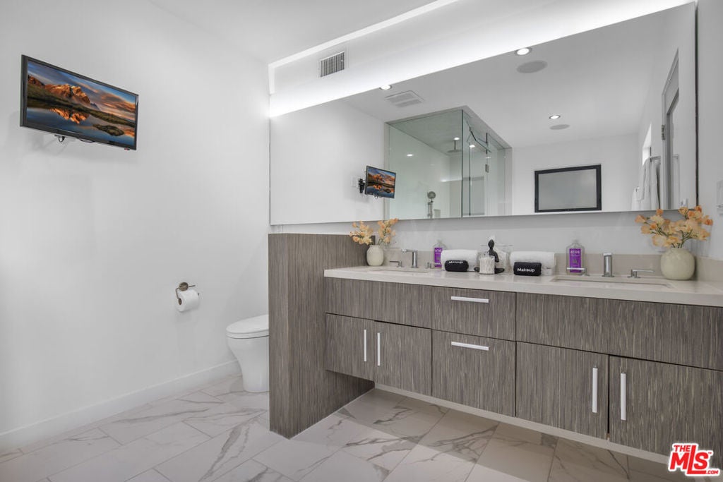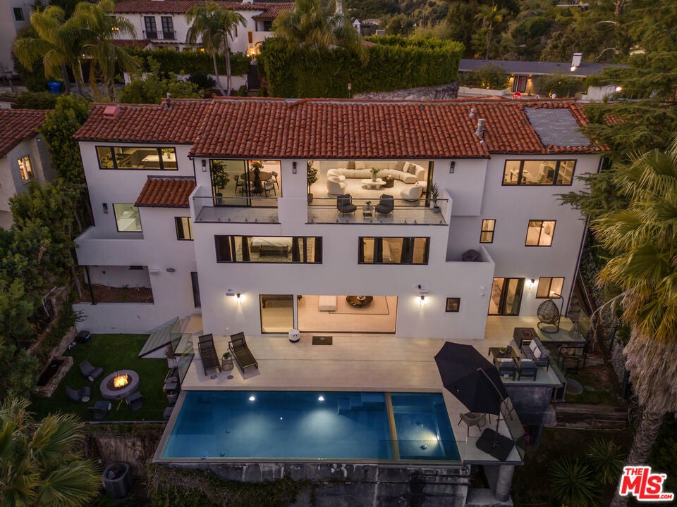 Exquisite Entertainer's Villa in Hollywood Hills Fully Furnished + MoveIn ReadyStep into sweeping panoramic views and refined design in this recentlyrenovated SpanishContemporary residence nestled on a top view street in the prestigious Outpost Estates. Featuring 4 bedrooms and 4 baths across approximately 4,079sqft of living space, this threelevel home sits on an 11,625sqft lot. Compass+2kensingtonbeverly.com+2On the main level, you'll find an open plan anchored by a private courtyard, living room with balcony, study separated by a striking marble fireplace, dining room and a chef's kitchen equipped with topoftheline appliances. Compass+1The primary suite offers a spacious walkin closet, dual vanity, soaking tub and private patio. The lower floor delivers an entertainmentlevel flex space ideal for a screening room, gym or yoga studio opening via pocket Fleetwood doors to an infinity pool and spa with citylight views. kensingtonbeverly.com+1Additional features include builtin audio, firepit terrace, twocar garage, waterfiltration system, Nest thermostats and custom finishes throughout.