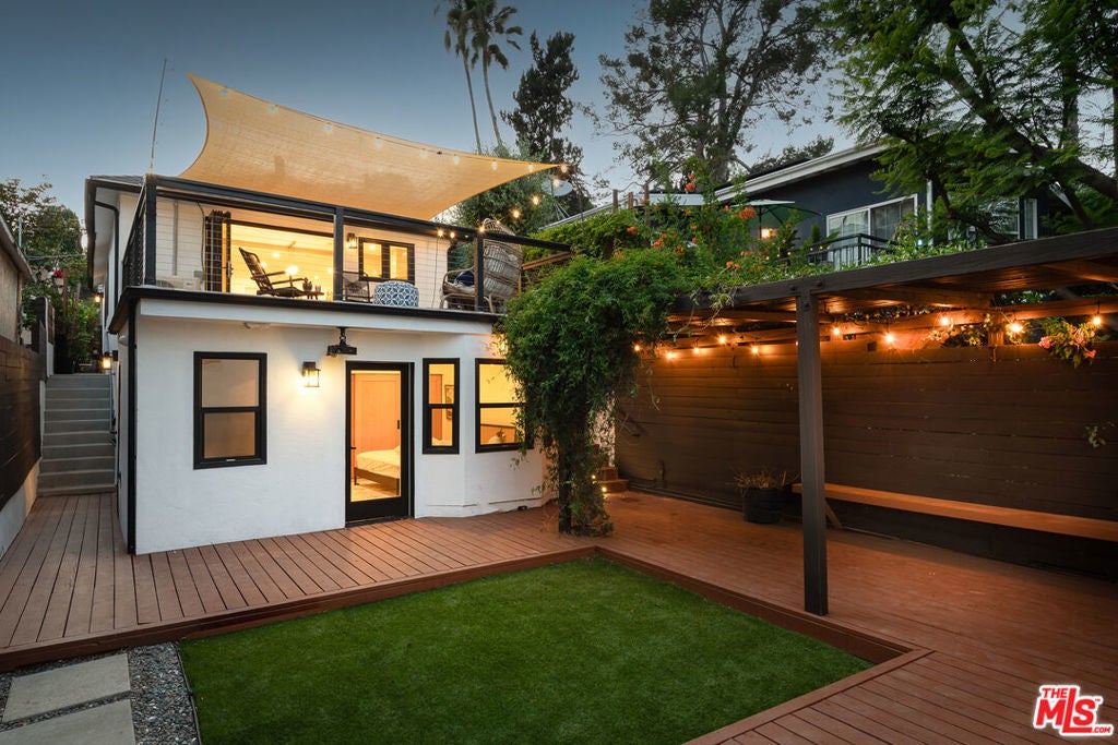 Street-to-Street Silver Lake Compound | Two Homes on One Lot (4BR / 3BA Main + 2BR / 2BA Guest). A rare chance to own a true Silver Lake compound with two fully independent homes on a private street-to-street lot. Unassuming from the street, the main 4BR / 3BA residence (approx. 1,475 sq ft) opens dramatically to hillside and treetop views, with an open living / dining / kitchen floor that flows out to a large view deck an effortless indoor outdoor extension of daily living.One level down, the primary suite, two secondary bedrooms with Jack-and-Jill bath, and central laundry form a complete and practical private sleeping level.From the lower street, a separate gated entrance leads to the 2BR / 2BA guest house (approx. 897 sq ft) with its own yard and a true two-car garage offering total independence for income, extended family, creative work, or a private studio retreat. Recent upgrades include foundation/seismic reinforcement, modernized systems, and full interior/exterior renovation, delivering turnkey peace of mind rarely available in historic Silver Lake. Income Potential: Main residence: $5,500/mo. Guest house: $4,500/mo. The guest house has previously operated as a furnished short-term rental - income statements available upon request. Location: Moments from Sunset Junction, Silver Lake Reservoir, Erewhon, Pine & Crane, Intelligentsia, Caf Stella, and more. Flexible living for: Owner + income offset. Multi-generational living. Work-from-home with meaningful separation. Anyone learning property stewardship / hosting responsibly. A turnkey, income-capable compound in one of Silver Lake's most walkable pockets at a price point that would be difficult to reproduce today.