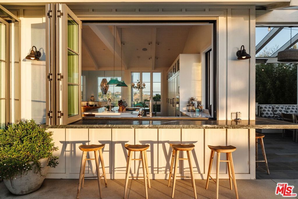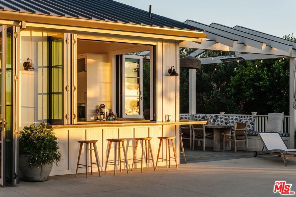 Just moments from the sand and surf, this newly rebuilt modern coastal estate captures the essence of Malibu living, where ocean breezes, open spaces, and timeless design come together in perfect harmony. Set on over an acre, the home offers privacy, sophistication, and effortless connection to the coast. Inside, the open floor plan is centered around a light-filled great room with vaulted ceilings and walls of glass that fold away to create seamless indoor-outdoor living. Natural light moves through every space, highlighting the clean lines, warm textures, and relaxed coastal palette that define the home's design. The chef's kitchen features custom cabinetry, professional-grade appliances, and generous counter space, all oriented toward soft ocean views that carry through to the tranquil primary suite. With five bedrooms and four-and-a-half bathrooms, the residence is designed for both comfort and versatility. Outdoors, the property unfolds like a private resort. Lounge by the sparkling pool and spa, play a match on the pickleball court, or unwind in the gym and sauna. A putting green and detached studio overlooking the pool offer space for recreation, creativity, or hosting guests. A three-car garage with EV charger and ample driveway parking completes the estate. Blending privacy, convenience, and coastal style, this Malibu retreat offers a turnkey lifestyle close to the beach, hiking trails, top-rated schools, and local restaurants. Available furnished or unfurnished.