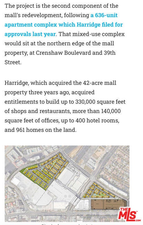 We are pleased to present this 6-unit garden-style multi-family asset located at 4161 Marlton Ave, featuring 2 vacant units ready for repositioning and major upside potential. Located in the desirable Baldwin Hills neighborhood, and close proximity to the nation's first Costco-anchored mixed-use development and a $700M Baldwin Hills Crenshaw Plaza redevelopment with all new residences, hotel, offices, retail, and restaurants forthcoming. This asset is placed in the path of major economic and residential growth. UNIT MIX- Six (6) 1bed + 1bath units. *LOW UTILITY COSTS- Separately metered for gas and electric, minimizing owner expenses and simplifying management. Tenants also pay their own trash expense. RUBS set up for water on 2 vacant units, providing new owner the opportunity to recover utility costs increasing overall net profit each month. Each unit boasts approximately 1000 sf offering spacious layouts with original hardwood floors, formal dining room, and in-unit washer/dryer hookups. The formal dining room and extra closets offer a quick and easy opportunity to convert both vacant units into a 2bd1ba for additional monthly rental income. Perfect for a seasoned investor or first-time buyers. Sited on a 8,011sqft lot, 6006sf rentable space, and 3-2 car garages with automatic garage doors. The gated community is well-manicured with lush landscaping offering a serene and comfortable environment for residents. Electric sub-panels in all units have been recently upgraded. Close to shopping and dining and Expo/Crenshaw (E) Line, providing access to Downtown LA, Culver City and the Westside.