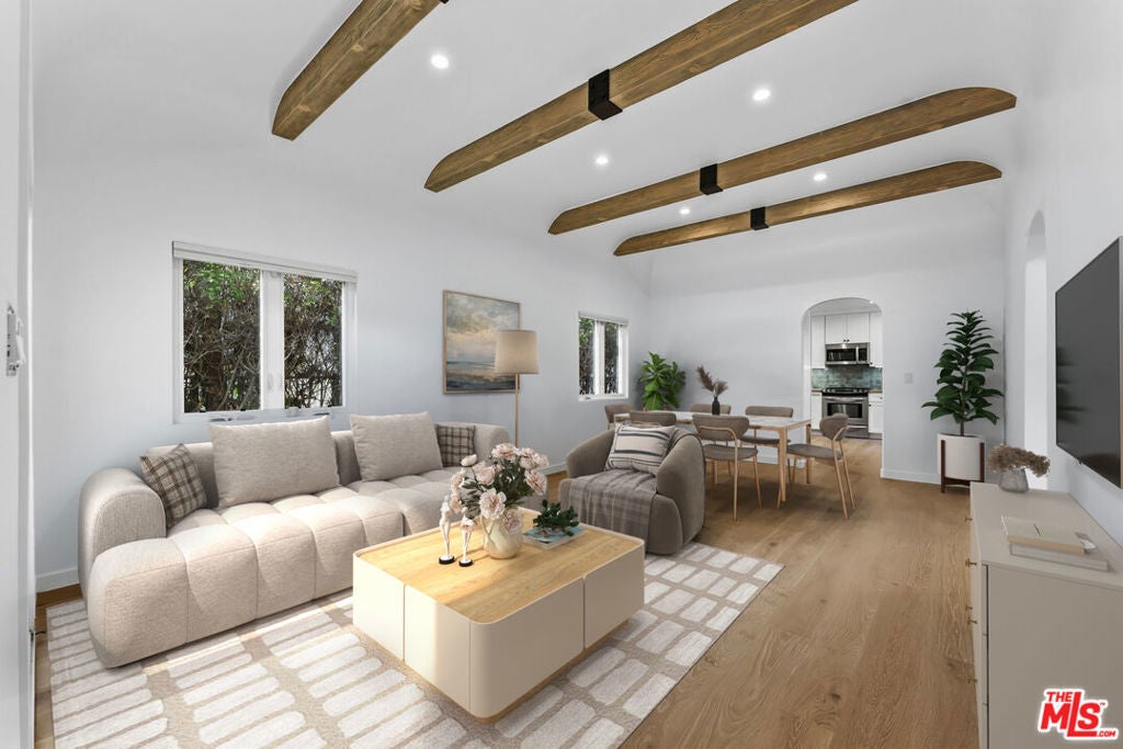 ELEGANT & SMART CONTEMPORARY HOME LOCATED IN WEST HOLLYWOOD'S BEST NEIGHBORHOOD, BORDERED BY ROBERTSON, MELROSE AND BEVERLY. REMODELED 3 BED, 2.75 BATH HOME WITH WOOD FLOORS THRUOUT, LIVINGROOM/DINING AREA WITH COVED CEILINGS, RECESSED LIGHTING & FRENCH DOORS TO PRIVATE FRONT YARD. CUSTOM TILE IN KITCHEN & BATHS, LARGE PRIMARY BEDROOM OPENS TO LOVELY & PRIVATE BACKYARD WITH VINE COVERED PATIO AND KOI POND. 2ND AND 3RD BEDROOMS ON SEPARATE WING, EACH WITH THEIR OWN BATHS. LARGE COOKS KITCHEN WITH STAINLESS STEEL APPLIANCES AND STONE COUNTERS.