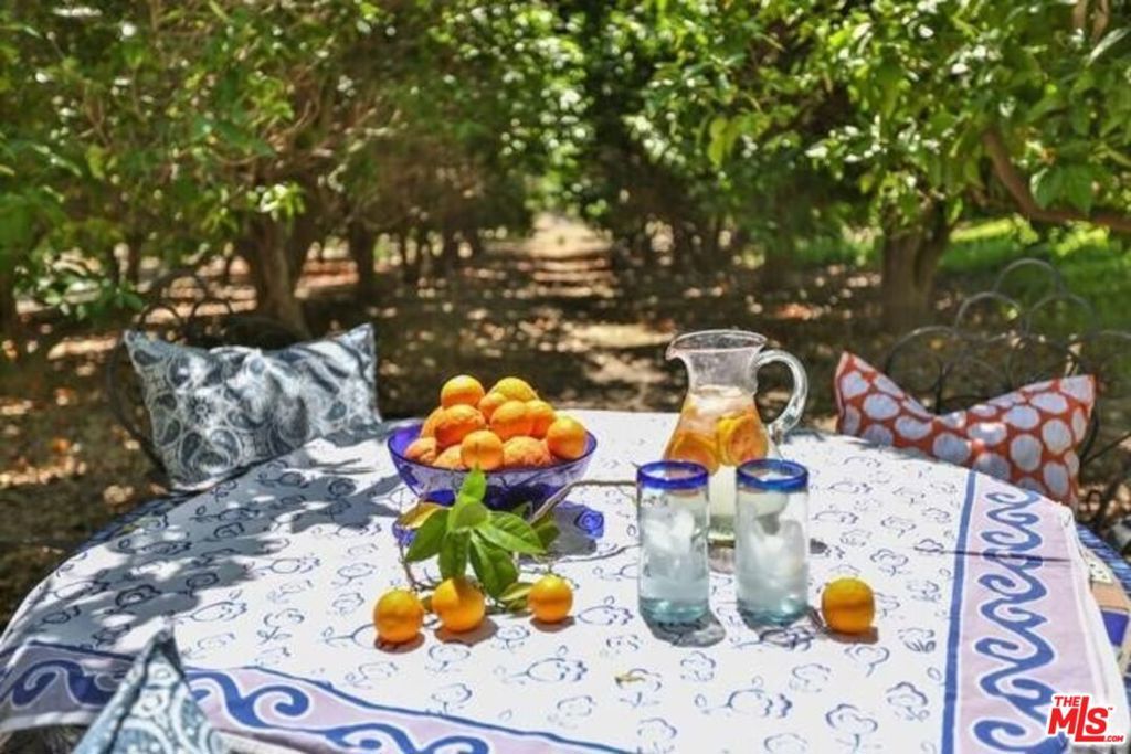 Tranquility at this exclusive country manor, ideally situated between Santa Barbara and Malibu within a prestigious gated community. Nestled amidst a picturesque 21-acre blood orange orchard, this grand estate offers a stunning six-bedroom, eight-bathroom villa, perfectly complemented by a separate guest house for additional privacy. Indulge in the opulent amenities, including a 50-foot custom-tiled pool, expansive outdoor entertaining areas, a sand volleyball court area, and a 25-foot aviary, all designed for ultimate relaxation and enjoyment. The property also boasts six-car garages, providing ample space for car enthusiasts or storage for multiple RVs and boats. The interior of the main villa exudes elegance and comfort, featuring a fabulous great room with a cozy fireplace and sliding doors that open to a scenic patio. The office/den includes a freestanding fireplace and built-in bookcases, creating an ideal space for work or leisure. The heart of the home, the gourmet kitchen, is a chef's dream with a professional-grade six-burner Wolf range, built-in refrigerator, large island, and garden window with stunning orchard views. Adjacent to the kitchen, the cozy breakfast room, complete with a fireplace and an abundance of windows, invites natural light to flood the space. Upstairs, the master suite serves as a true retreat with its spacious balcony offering breathtaking views of the orchard and majestic mountains. Additional generously-sized bedrooms provide comfort and privacy for family and guests. The semi-detached, self-contained guest house, with its private entrance, ensures a welcoming and independent stay for visitors. Ideal for a private residence or corporate retreat, this estate embodies serene living with expansive and inviting entertainment areas. With a blend of elegance, privacy, and modern comforts, this Ventura County gem offers an idyllic setting for a luxurious lifestyle, making it the perfect sanctuary for those seeking peace and exclusivity in a breathtaking natural environment.
