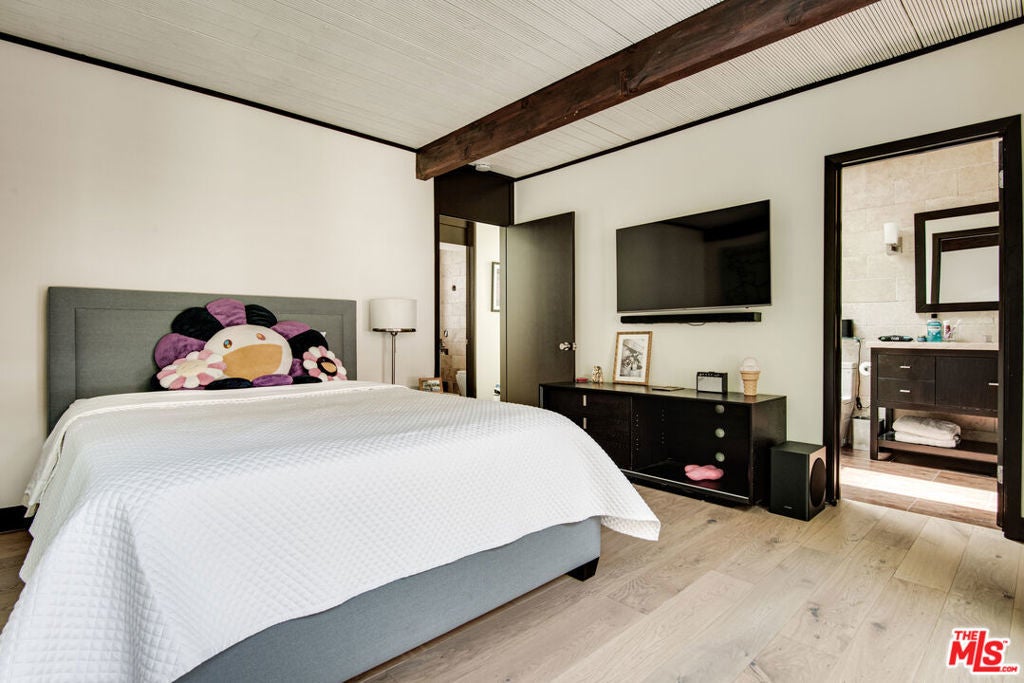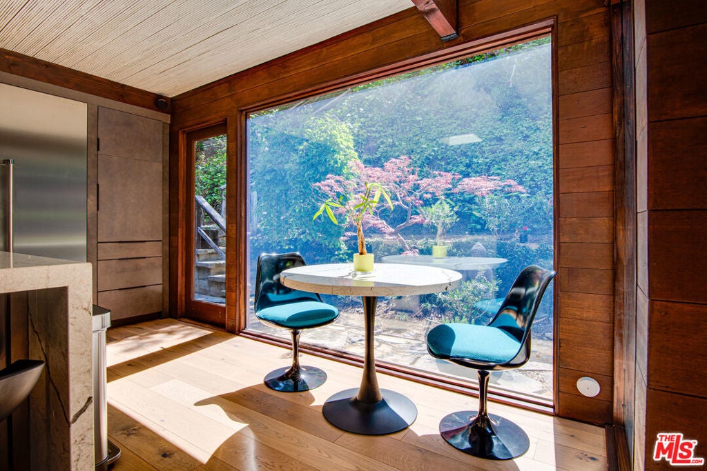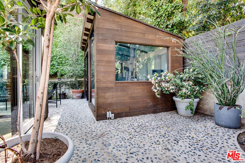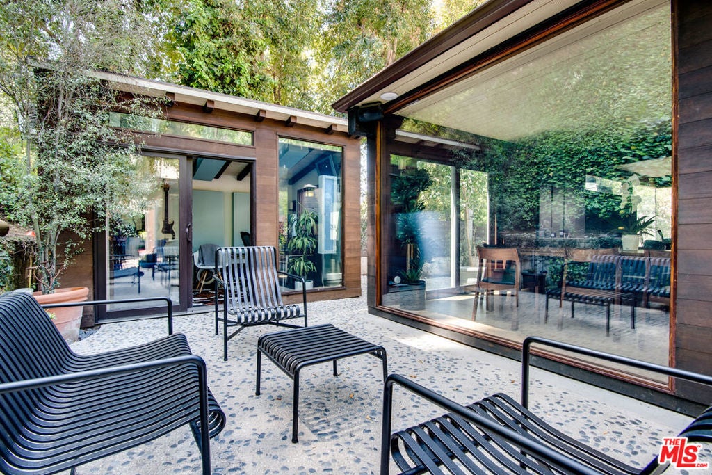 A mid-century jewel box with a separate music studio, constructed in 1960, epitomizing architectural elegance and modern refinement. Meticulously renovated, it presents a harmonious blend of vintage glam and contemporary luxury. Upon entering, you are greeted by distinctive architectural elements emblematic of the era, including clean lines, expansive windows that flood the interiors with natural light, and an astute use of space.The open floor plan masterfully integrates the living, dining, and kitchen areas, creating an ideal environment for both sophisticated entertaining and everyday living. The gourmet kitchen, a culinary enthusiast's dream, features premium appliances, sleek countertops, and ample storage.The residence comprises three thoughtfully designed bedrooms and three bathrooms, each exuding comfort and style. The primary suite serves as a serene retreat, complete with a spa-like ensuite bathroom.The outdoor space is equally inviting, perfect for both relaxation and social gatherings. A detached studio offers versatile use, ideal as a gym or office. Additional amenities include a laundry room, two-car garage, and tandem parking. This is Beverly Hills living at its zenith.