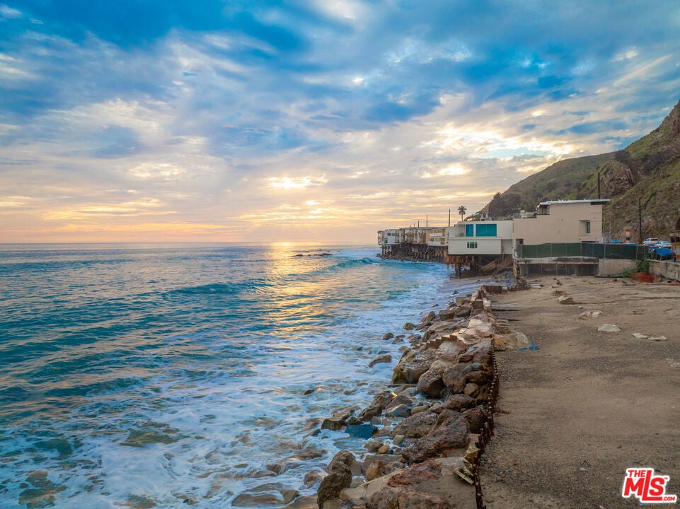 This beautiful beachfront lot has been cleared, offering a clean canvas to design and build your custom residence, the home was lost in the Palisades Fire. This lot is situated within close proximity to both Santa Monica and Malibu center and offers spectacular views of the ocean, coastline, Catalina and city. Sellers were very close to completion of the permit process for a new wastewater treatment system at the time of the fire. The home lost in the fire was approximately 1,760 square feet with 3 bedrooms and 2-1/2 baths. Eligible owners may have the benefit of the accelerated permit process and may be entitled to rebuild up to 10% larger than the originally permitted home. The lot is being sold in As Is condition. Buyers must do their own due diligence to verify and consult with their own experts and the City of Malibu, County of Los Angeles, California Coastal Commission and any other relevant authorities/agencies to confirm any and all rules and regulations relating to the ability to rebuild, permitting process, utilities, etc. Seller and seller's brokers/agents/representatives make no representations or warranties regarding the property's condition or development potential. The photos of the home lost in the fire are for illustrative purposes only. The lines to help outline the property do not in any way represent the actual property lines.