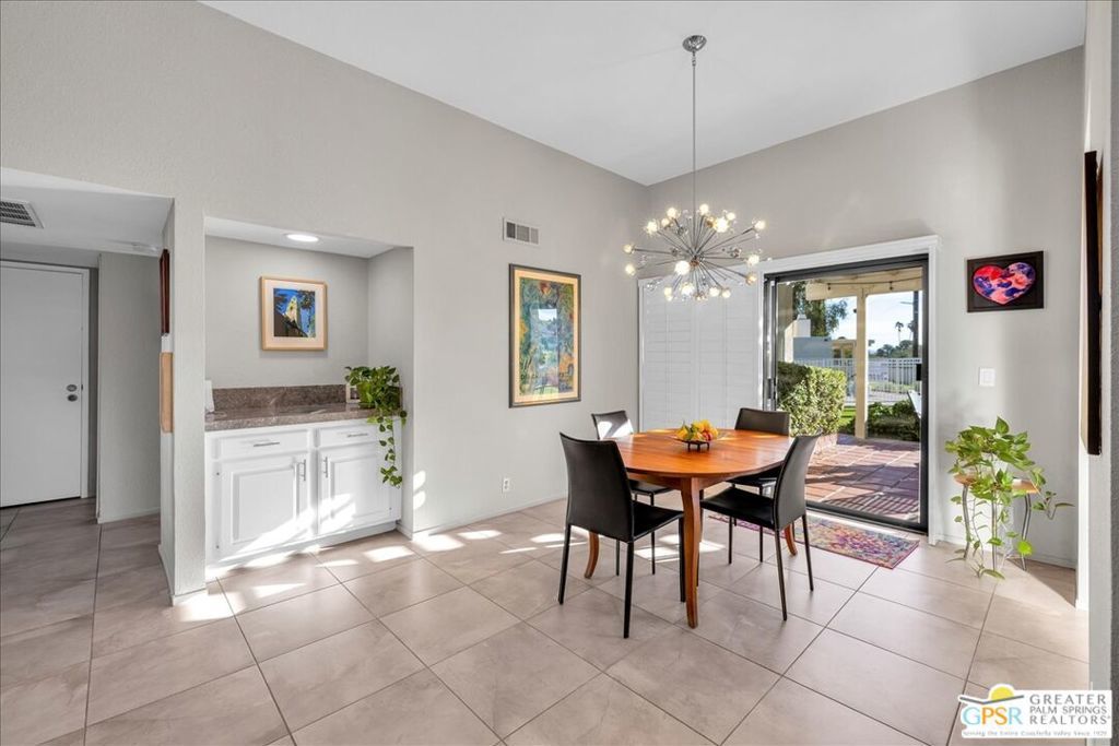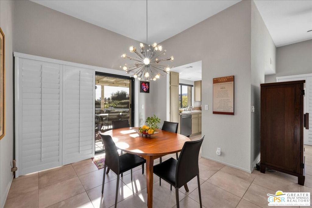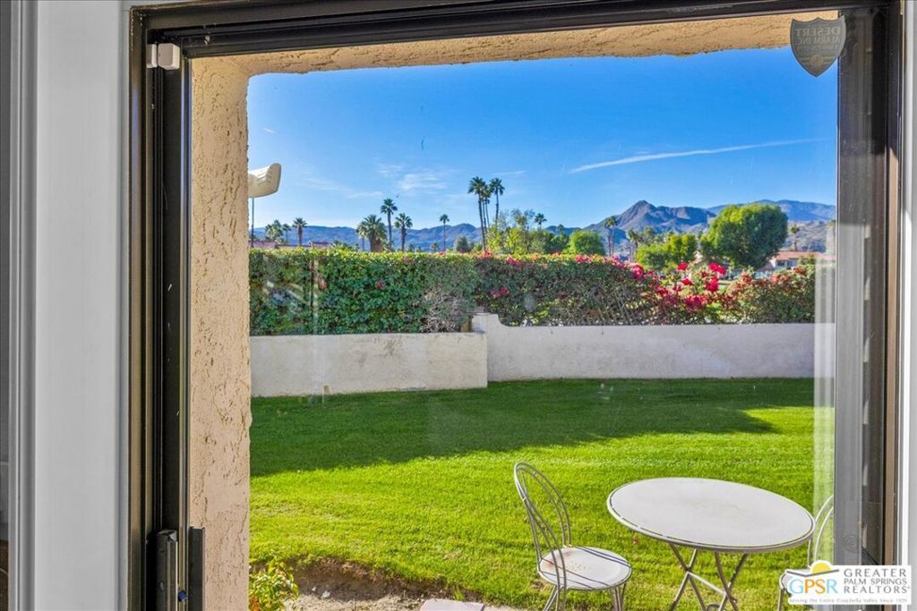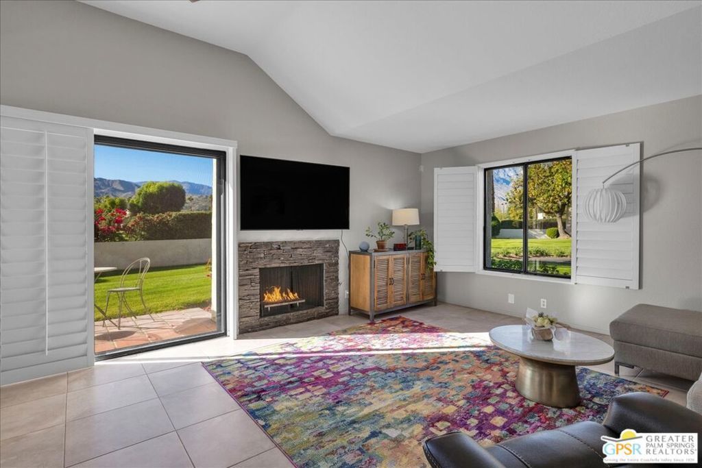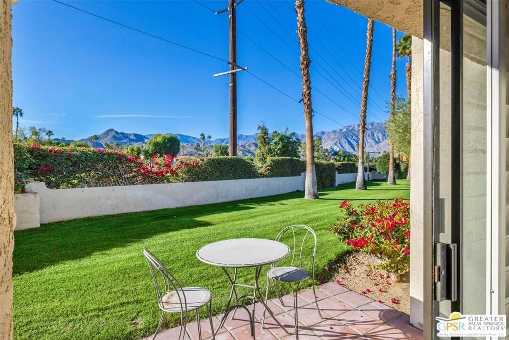 Stunning mountain views set the tone for this furnished, move-in-ready South Palm Springs condo. Tucked into a peaceful, low-density community, this stylishly updated end unit blends desert charm, modern comfort, and dramatic mountain scenery from most windows. Fee-simple land ownership adds long-term value to this compelling opportunity. Natural light fills the home, highlighting upgraded kitchen and baths, vaulted living-room ceilings that enhance the airy feel, and a striking Jonathan Adler Sputnik chandelier for a touch of designer flair. Recent improvements include a newer HVAC system and water heater, offering everyday peace of mind. Located in Tahquitz Creek Villasone of Palm Springs' best-kept-secret communities known for its expansive greenways and mountain backdropthis home delivers easy, bright living. Just steps away, the rarely used pool feels almost like your own private oasis. A single-car garage plus a covered Saltillo-tiled carport make daily life effortless.Enjoy landscaped grounds, pools, a spa, tennis and pickleball courts, all within a quiet, well-kept enclave. Close to shopping, dining, and moments from the CV Link for walking and biking, this mountain-view retreat is ideal as a full-time residence or a weekend escape.