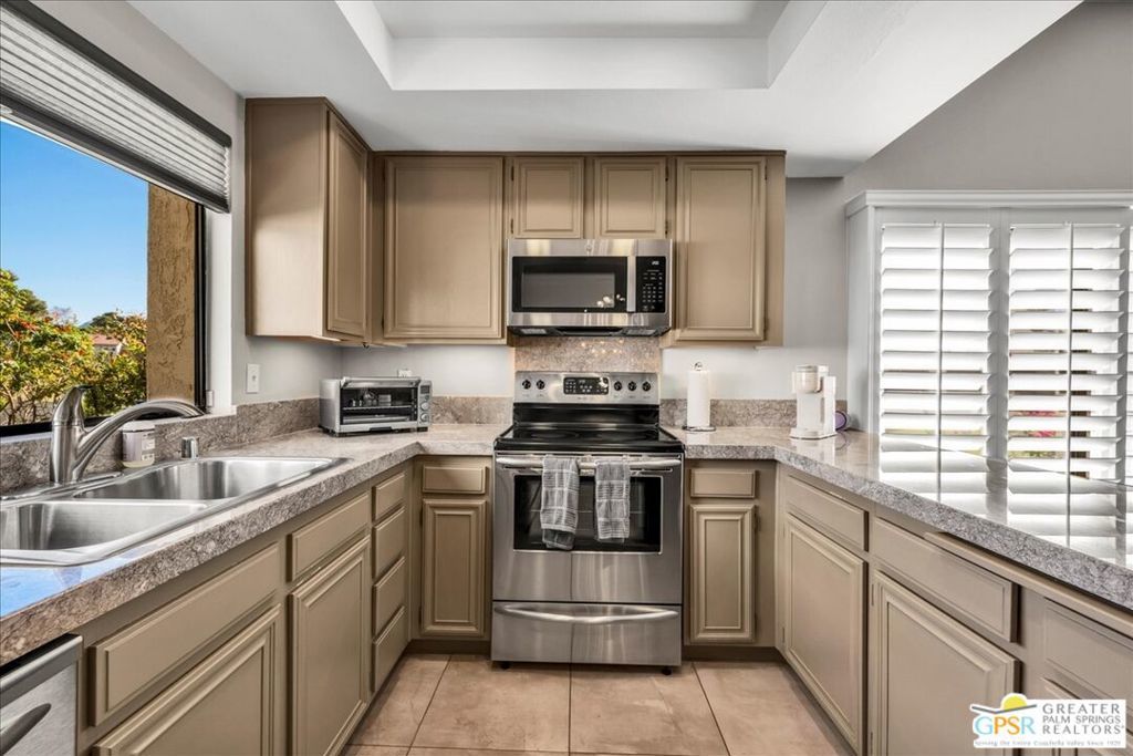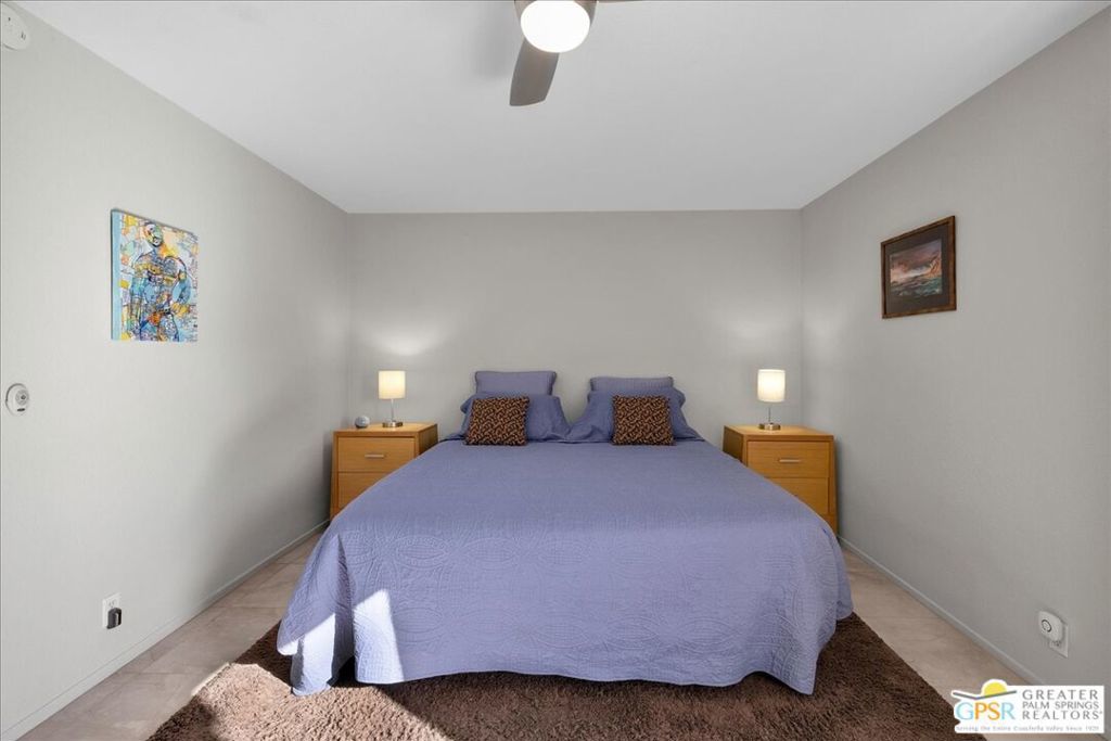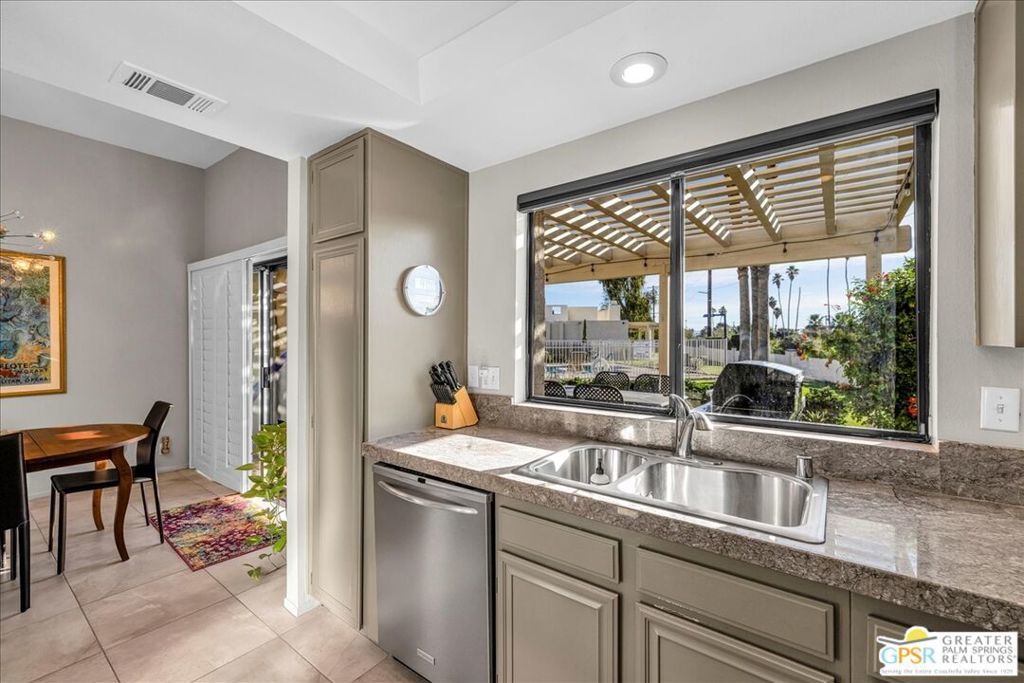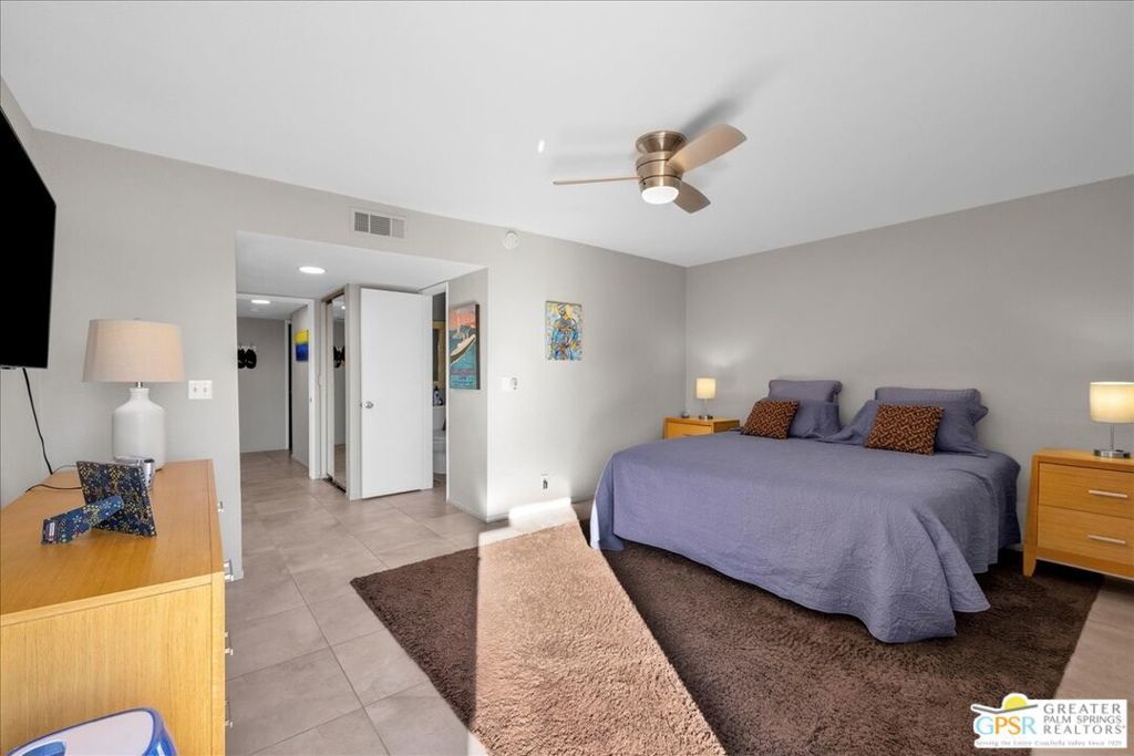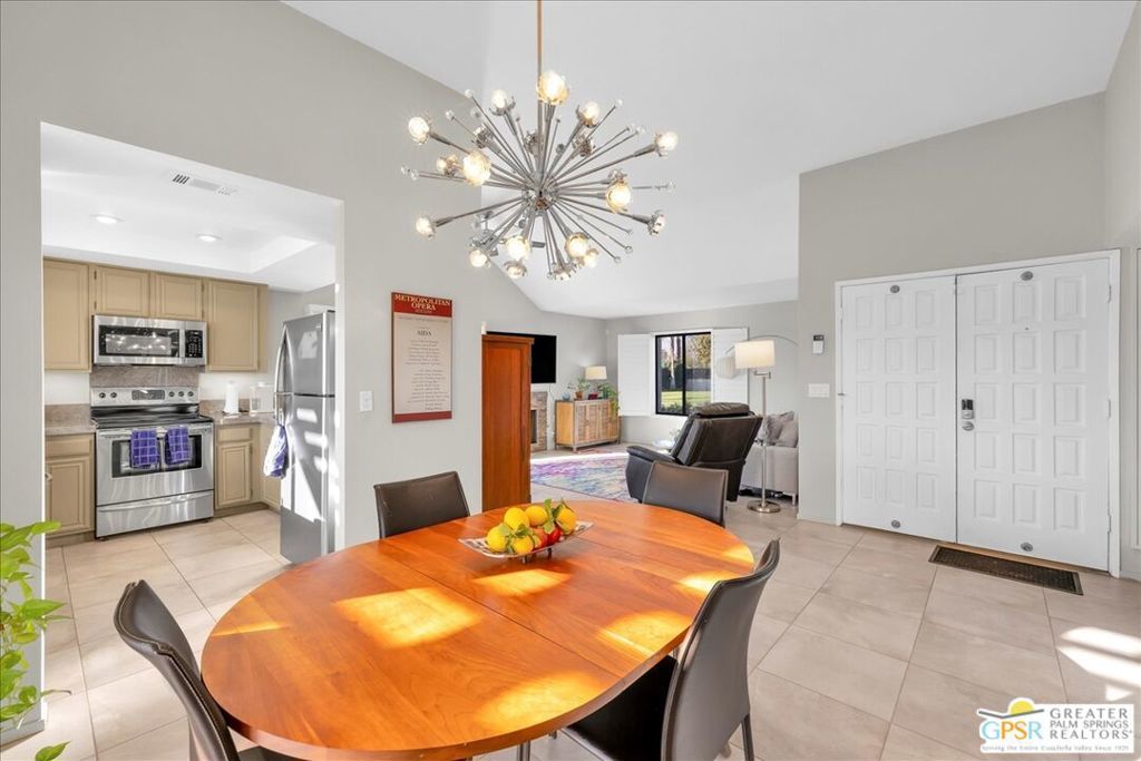 Stunning mountain views set the tone for this furnished, move-in-ready South Palm Springs condo. Tucked into a peaceful, low-density community, this stylishly updated end unit blends desert charm, modern comfort, and dramatic mountain scenery from most windows. Fee-simple land ownership adds long-term value to this compelling opportunity. Natural light fills the home, highlighting upgraded kitchen and baths, vaulted living-room ceilings that enhance the airy feel, and a striking Jonathan Adler Sputnik chandelier for a touch of designer flair. Recent improvements include a newer HVAC system and water heater, offering everyday peace of mind. Located in Tahquitz Creek Villasone of Palm Springs' best-kept-secret communities known for its expansive greenways and mountain backdropthis home delivers easy, bright living. Just steps away, the rarely used pool feels almost like your own private oasis. A single-car garage plus a covered Saltillo-tiled carport make daily life effortless.Enjoy landscaped grounds, pools, a spa, tennis and pickleball courts, all within a quiet, well-kept enclave. Close to shopping, dining, and moments from the CV Link for walking and biking, this mountain-view retreat is ideal as a full-time residence or a weekend escape.