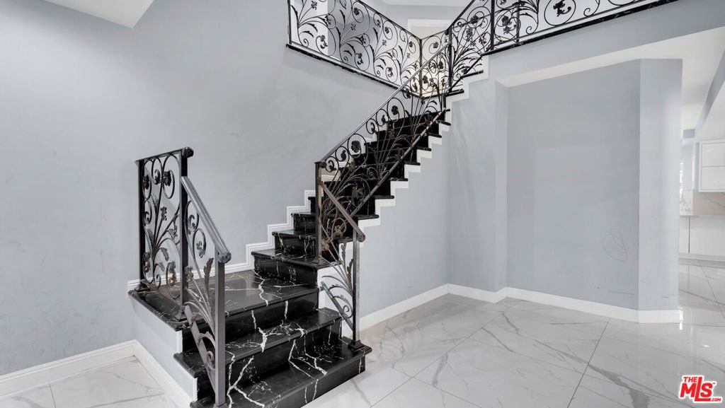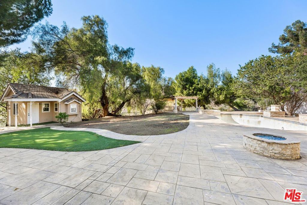Located in highly sought-after North Granada Hills, this 2006 custom-built residence presents a rare opportunity for renovation - property has been mostly remodeled with some areas in need of TLC & cosmetic completion. Featuring 5-beds and 7-baths, this stately home comprises 3,450 SF, plus a studio-style guest house, and is situated on an expansive 26,000+/- SF Lot. A formal entry with soaring ceilings opens to generous living spaces with coffered ceilings, crown molding, custom wrought iron detail, and marble/hardwood floors throughout. Each bedroom features its own remodeled en-suite bathroom. Upstairs, the primary suite features a pitched ceiling, marble fireplace, balcony, and a large en-suite bath with soaking tub, dual vanities and a large walk-in shower. The impressive backyard is perfect for entertaining, featuring a large saltwater pool and spa, custom stone fire pits, gazebo with built-in BBQ, and sweeping views of the canyon. An incredible opportunity with endless potential in one of Granada Hills' most desirable neighborhoods - close to Zelzah Park, Aliso Canyon, and within the top-rated Granada Hills Charter School District. Property being sold as is, where is - Buyer to verify all information.