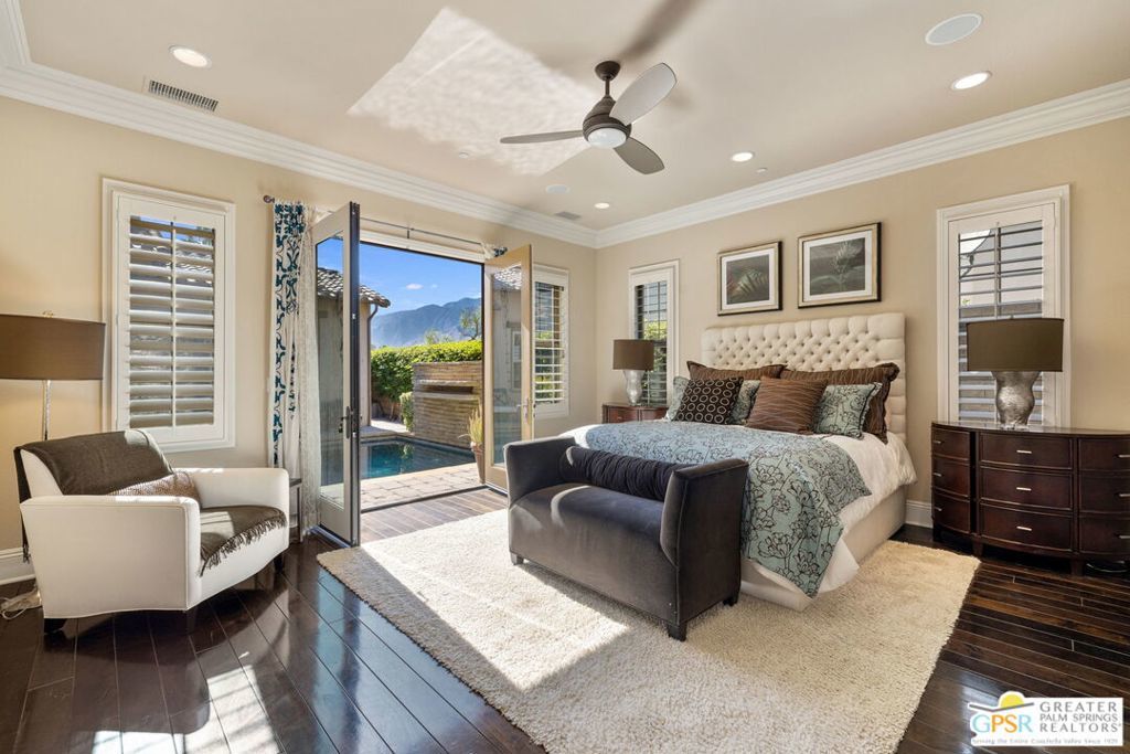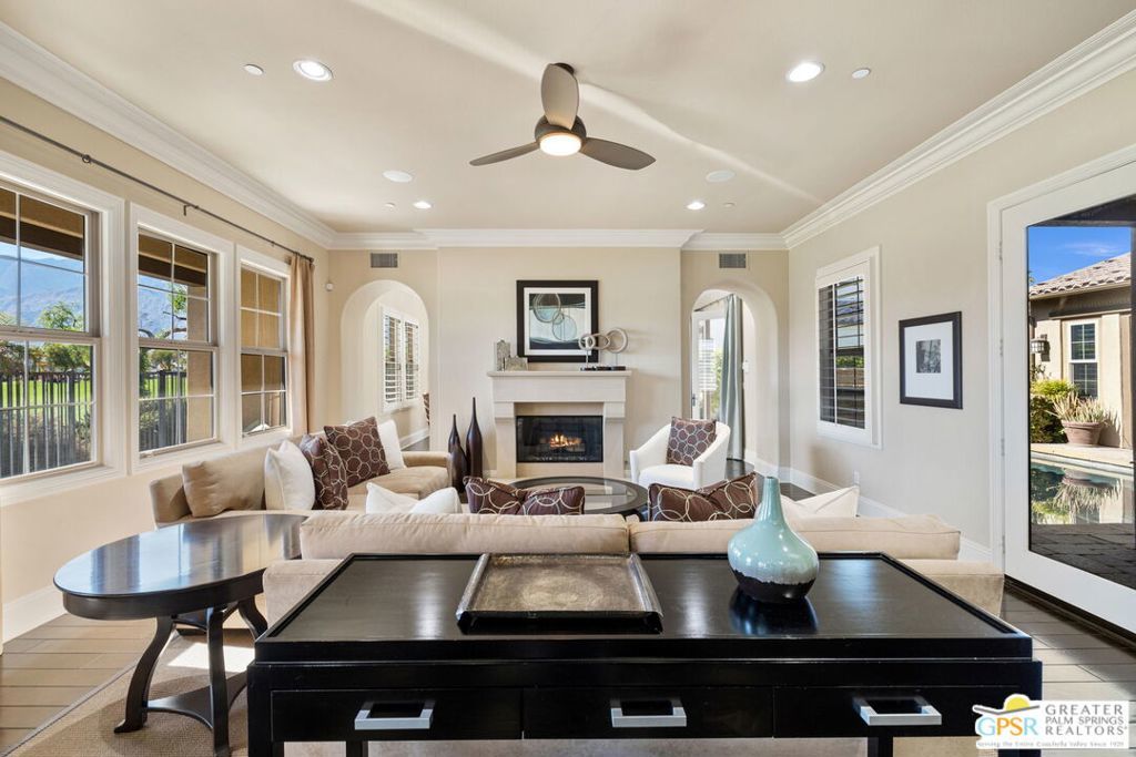 EXCEPTIONAL! Former Model Home located at Escena Golf Club delivers premier finishes, formal AND casual living areas, great separation of bedrooms, and multiple outdoor areas that offer PANORAMIC FAIRWAY AND MOUNTAIN VIEWS! If views are important to you, you will LOVE the south-facing gourmet kitchen with designer finishes that opens to the light and bright great room that offers incredible views and easy access to the south-facing backyard that overlooks the fairway and the surrounding mountains! Adjacent den/media room also offers views and access to the PRIVATE pool as well as the adjacent in-ground spa. Separate dining room with buffet is perfect for formal entertaining! Main Floor Primary Ensuite offers views, opens to the private pool and has a spa-like bath with split vanities and a large walk-in shower. STUNNING! Upstairs is Junior Ensuite Two which has views, an adjacent retreat, and access to a stylish bath. Also on the second floor is a large family room that includes VIEWS with a large expansive deck. This could be turned into a large third bedroom ensuite. Come experience Escena where 450 acres work together to create an exceptional Palm Springs lifestyle that everyone can enjoy! AVAILABLE TURNKEY FURNISHED.
