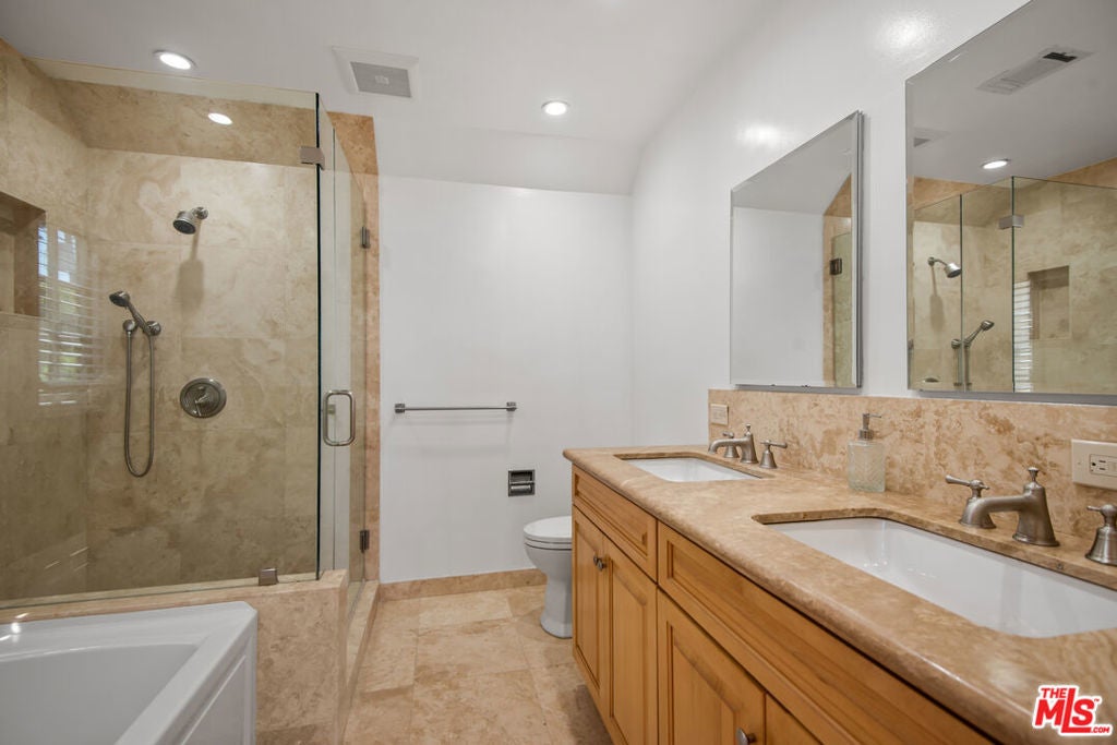 Completely remodeled yet full of original charm, this stunning home features designer finishes and elegant fixtures throughout. The spacious primary suite includes a jacuzzi tub, standalone shower, double vanities, walk-in closet, and a private veranda overlooking the lush courtyard.The gourmet kitchen boasts high-end Wolf and Sub-Zero stainless-steel appliances and opens to a bright dining area. The living room offers large glass sliding doors that lead directly to the backyard perfect for indoor-outdoor living. Additional features include: Detached two-car garage with built-in overhead storage, Separate laundry room, Four bedrooms, three full bathrooms, and one half bath. Located in one of Toluca Lake's most desirable neighborhoods, this home is just a short walk to Trader Joe's, restaurants, and shops. A rare combination of style, comfort, and prime location.