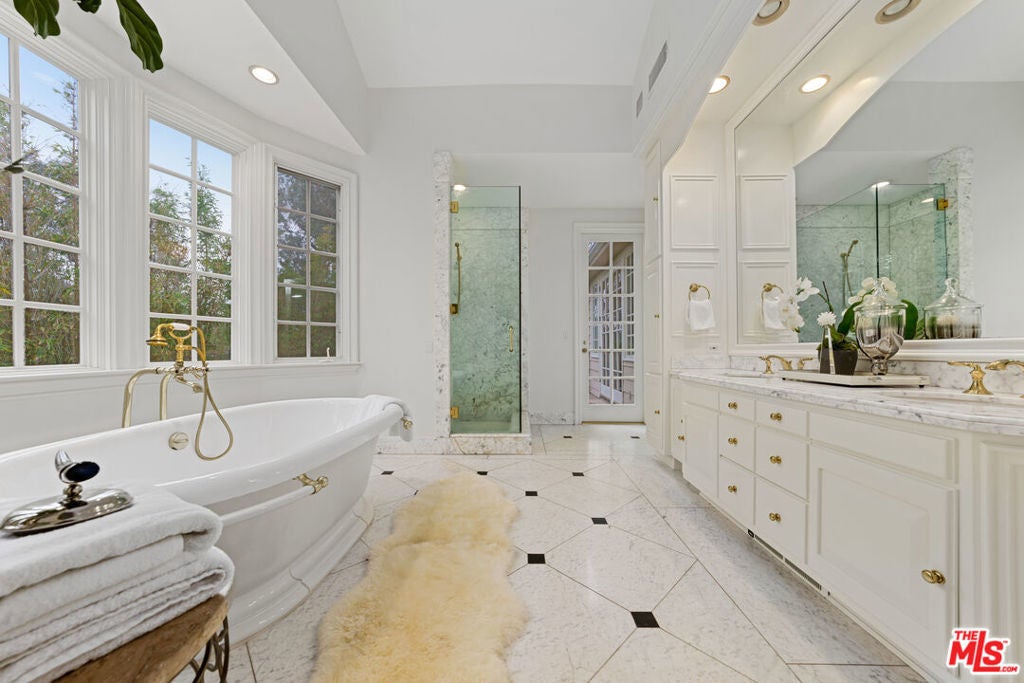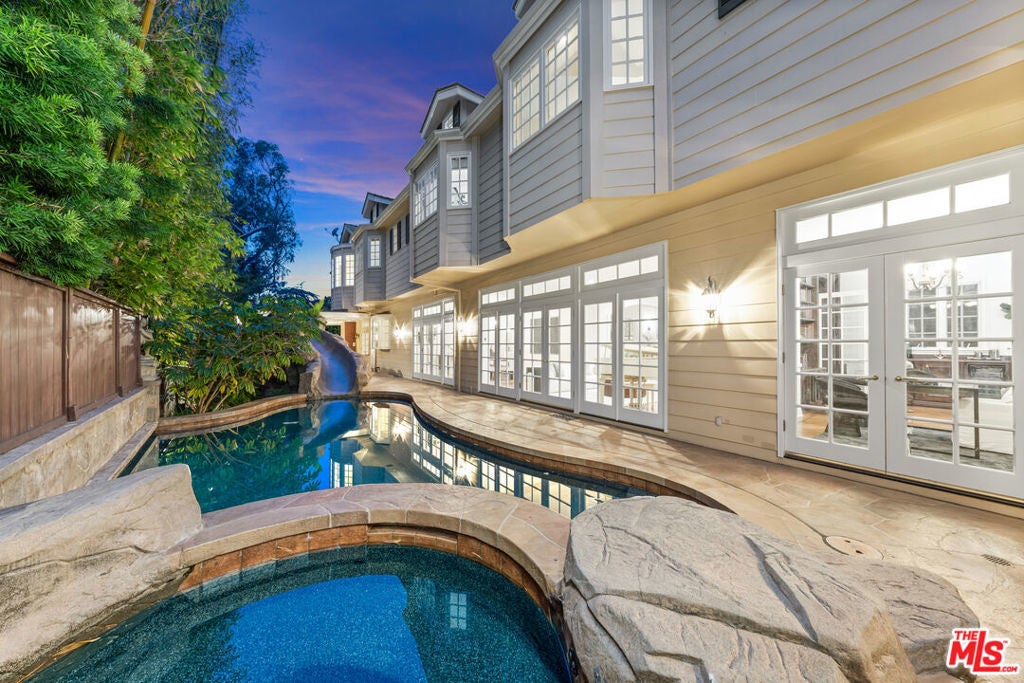 CHARMING ESTATE in prestigious area of Brentwood: sitting on a grand 10,572 square foot lot this gorgeous two-story estate has 6 bedrooms & 6 bathrooms with finest custom details & quality at every corner. Privately tucked away at end of cul-de-sac with private driveway & 3 car garages. Its a grand yet intimate space make ideal for elegant cozy living & entertaining, special highlights: the spectacular primary suite with vaulted ceiling, an intimate sitting area, 2 large walk-in closets, balcony, spa-like bath and soaking tub and double vanity - fireplace in family room, primary suite, living room, office and patio, an oversized gourmet kitchen with large -center island, and walk-in pantry with glass ceiling breakfast area. All doors open to a lush outdoor space, including: a pebble-tech saltwater pool with rockslide, covered lounge area with fireplace, and a built-in grill with large island. Backyard haven! Perfect for entertaining all year long! The property also includes private office with fireplace, guest suite with separate entryway and large gym. This property is also a part of an award-winning school district and neighboring to the best restaurants and shops of the beautiful city of Brentwood.