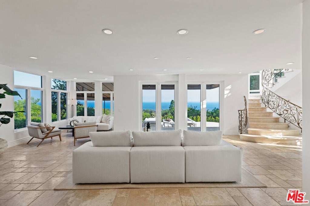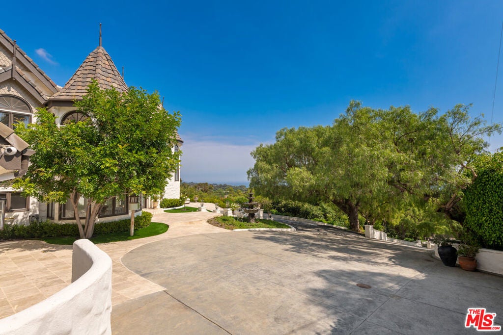 Welcome to your private paradise, where a long driveway leads you to this magnificent Normandy-style estate. Privacy hedges and mature trees surround the property, creating an oasis of tranquility. As you approach the main house, a charming fountain greets you, along with lush turf lawn areas that complement the landscape. This exceptional residence offers breathtaking ocean views from the front yard. Step up to the covered front door, and through the double glass doors, you'll find yourself in an inviting foyer with stone tile floors.Straight ahead, the living room boasts the same stone floors, French doors, and more captivating ocean views. A large gas fireplace with a beautiful mantle provides a cozy focal point, while a nook within the living room offers stunning ocean and mountain views.Behind the living room, the dining room features high ceilings and stone tile floors. Sliding glass doors open to the backyard, creating a seamless indoor-outdoor dining experience. A hallway leads to the gourmet kitchen, accessible from the front door as well. The kitchen features stone tile floors, high ceilings with recessed lighting, granite counters on the island, and top-of-the-line appliances, including a Sharp microwave, a Sub-Zero fridge and freezer, a double GE oven with convection and self-clean capabilities, a mini wine fridge, and an Asko dishwasher. Additional stone counters with a sink and ample built-in storage make this kitchen a chef's dream. A deep walk-in pantry offers even more storage space and includes another Whirlpool fridge and freezer. Adjacent to the kitchen is a butler's pantry and laundry room with granite counters, a sink, and a Whirlpool washer and dryer. This space leads to a full bathroom with a sink, vanity, and shower stall.The breakfast room off the kitchen features curved walls and windows that provide ocean views, high ceilings, and stone counters. A charming powder room with Marie Antoinette-inspired decor, complete with hand-painted blue walls and gold trim, adds a touch of whimsy. A grand staircase with a chandelier offers a dramatic entrance to the second floor, where a large reading nook welcomes you. The owner's suite includes wide plank wood floors, two sets of French doors leading to a balcony with ocean views, a marble fireplace, and a sitting area. The owner's bathroom is a true sanctuary with a water closet, a linen closet, a shower stall with a marble bench and double shower heads (including a rainfall shower), and a built-in tub with jets. The bathroom opens to a spacious area with double sinks, a vanity, stone counters, and French doors to a balcony. A walk-in closet with built-ins provides ample storage space. The top floor features a second suite with ocean views, a fireplace, French doors to balconies, and a circular sitting room with ocean views. The ensuite bathroom boasts marble counters, a freestanding tub, and a shower stall. A walk-in closet completes this luxurious retreat. Includes 6 parking spaces, a sprinkler system, an AC system, and security cameras throughout. The backyard is a haven with a jacuzzi, a pristine pool with matching tile, and a covered awning with an open patio area for outdoor dining and lounging. Steps lead through the trees down to the driveway, and a built-in BBQ by the jacuzzi is perfect for entertaining. *Lease includes main house & guest only. Second guest house above garage is not included.*