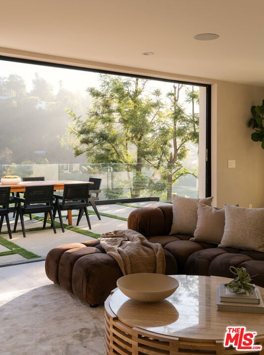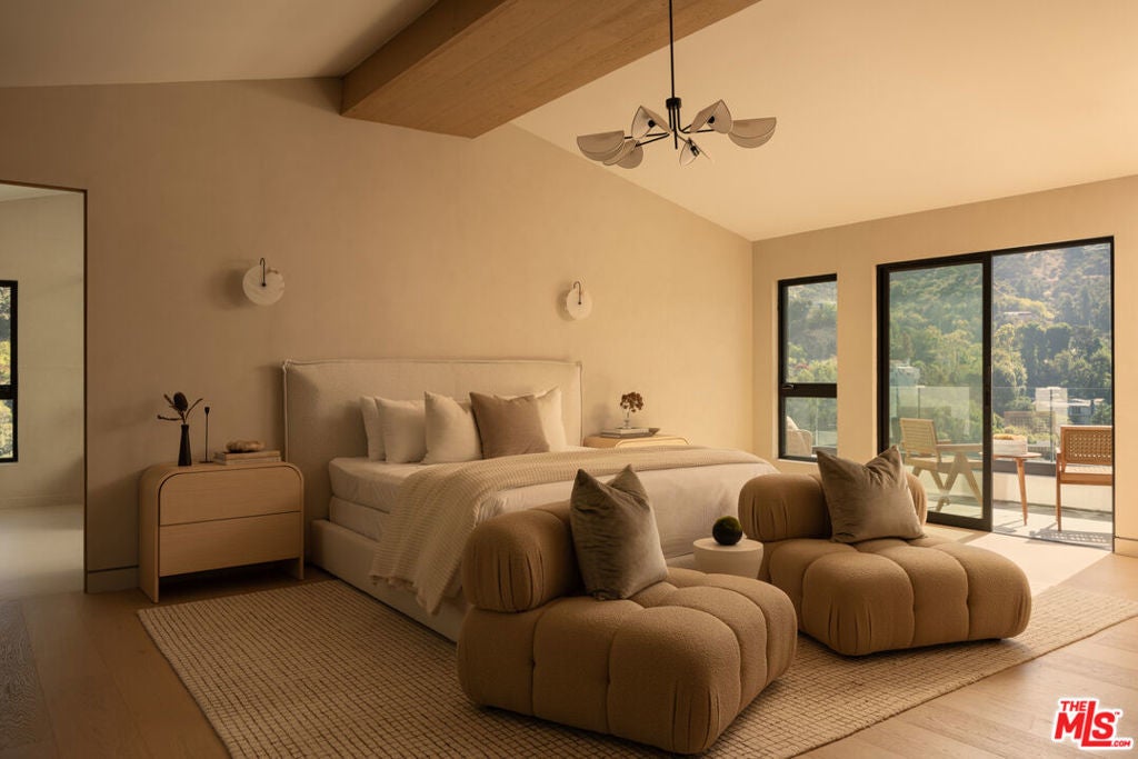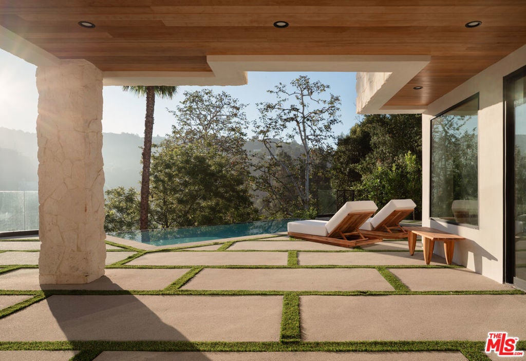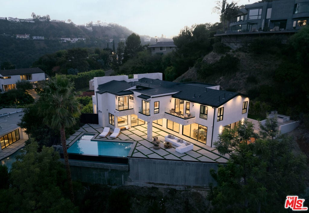 Tucked away behind gates at the end of a long private driveway, this newly rebuilt estate offers explosive canyon views and the quintessential Hollywood Hills lifestyle. With parking for multiple cars and unmatched privacy, the home is designed for both elevated entertaining and everyday comfort. Walls of glass and an open, airy floor plan seamlessly connect indoor and outdoor living. Expansive living areas are filled with natural light and open directly to the backyard, creating effortless flow for gatherings. At the heart of the home, the chef's kitchen features Thermidor appliances, Taj Mahal waterfall countertops, custom cabinetry, and a spacious walk-in pantry a true showcase of modern design and functionality. The backyard is a resort-like paradise. An infinity pool and spa appear to float over the canyon, while a built-in BBQ center, fire pit lounge, fully covered patio, and generous grassy lawn create the ultimate entertaining environment surrounded by breathtaking vistas. The luxurious primary suite serves as a private retreat with vaulted ceilings, a fireplace, dual oversized walk-in closets and a balcony framing the panoramic views. The spa-inspired bathroom boasts a soaking tub, walk-in shower, and makeup vanity, offering a daily escape. Every detail of this estate reflects a commitment to contemporary design and comfort, blending seamless indoor/outdoor living with top-tier amenities. Just minutes from the Sunset Strip, world-class dining, and LA's best nightlife, this Nichols Canyon retreat embodies modern luxury at its finest.