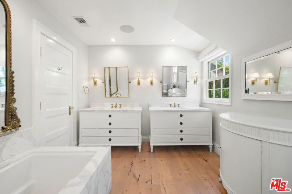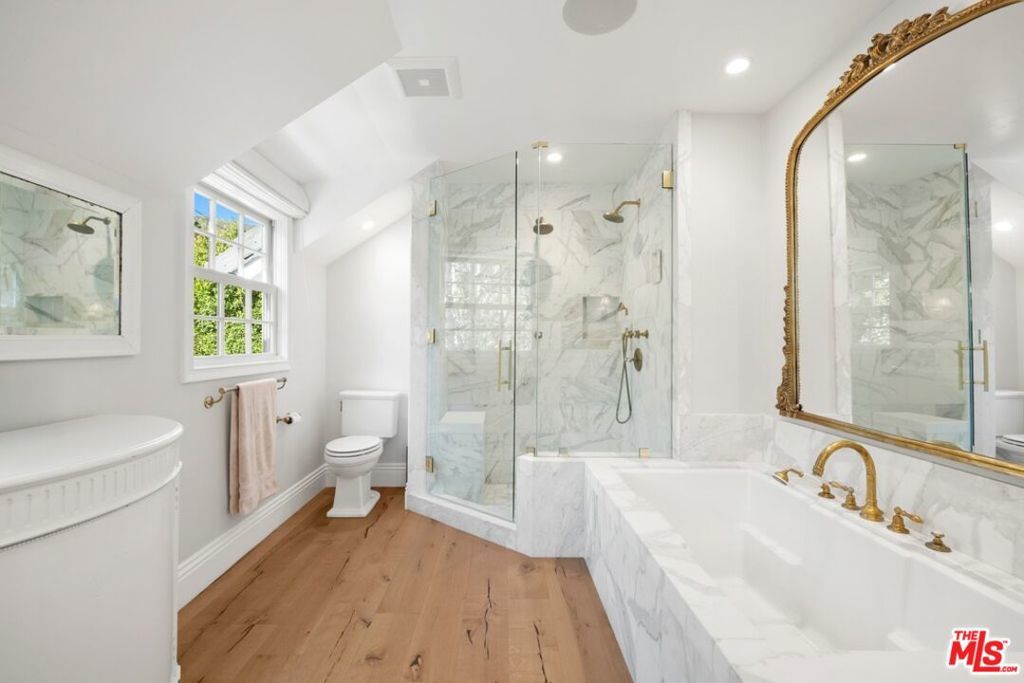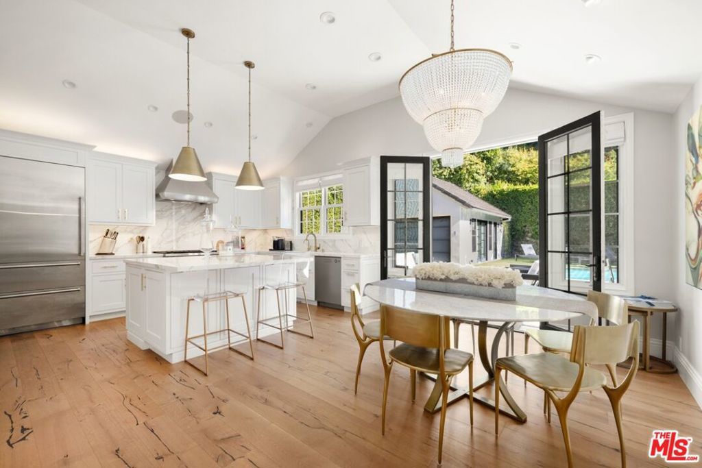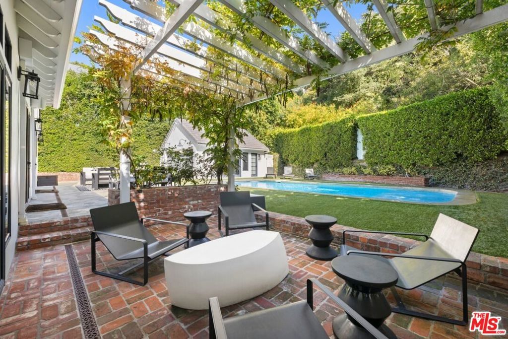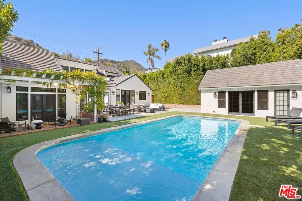 Serene, stylish, and effortlessly private, this impeccably renovated traditional home is set behind secure walls and gates. Flooded with natural light and defined by soaring ceilings and an intuitive, open layout, the residence showcases exceptional craftsmanship and luxury finishes throughout. With 3 bedrooms and 5 baths, the home is enveloped by lush landscaping, mature magnolia and fruit trees, white roses, and greenery that ensures complete privacy.The family room flows seamlessly into an elegant dining area and a chef's kitchen outfitted with state-of-the-art Wolf and Sub-Zero appliances, all overlooking a resort-like backyard with a sunlit pool and outdoor dining space. The tranquil primary suite features French doors to a private balcony, a generous walk-in closet, and a spa-quality bath.Thoughtful upgrades include European oak floors, Waterworks baths, Circa lighting, Ralph Lauren window treatments, and fully updated systemsroof, plumbing, HVAC, electrical, and siding. Smart-home integration and a comprehensive security system complete this turnkey offering. Private, sophisticated, and effortless, this home embodies the best of Beverly Hills living. Easy to show.