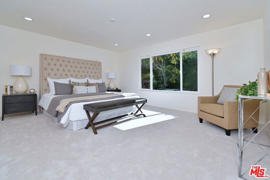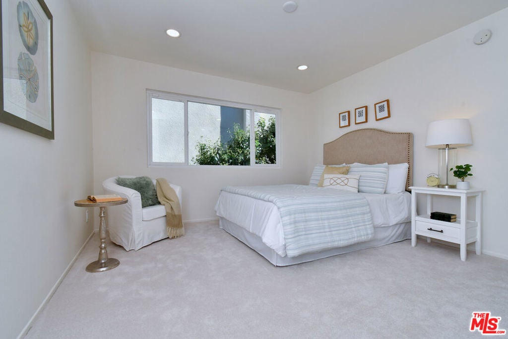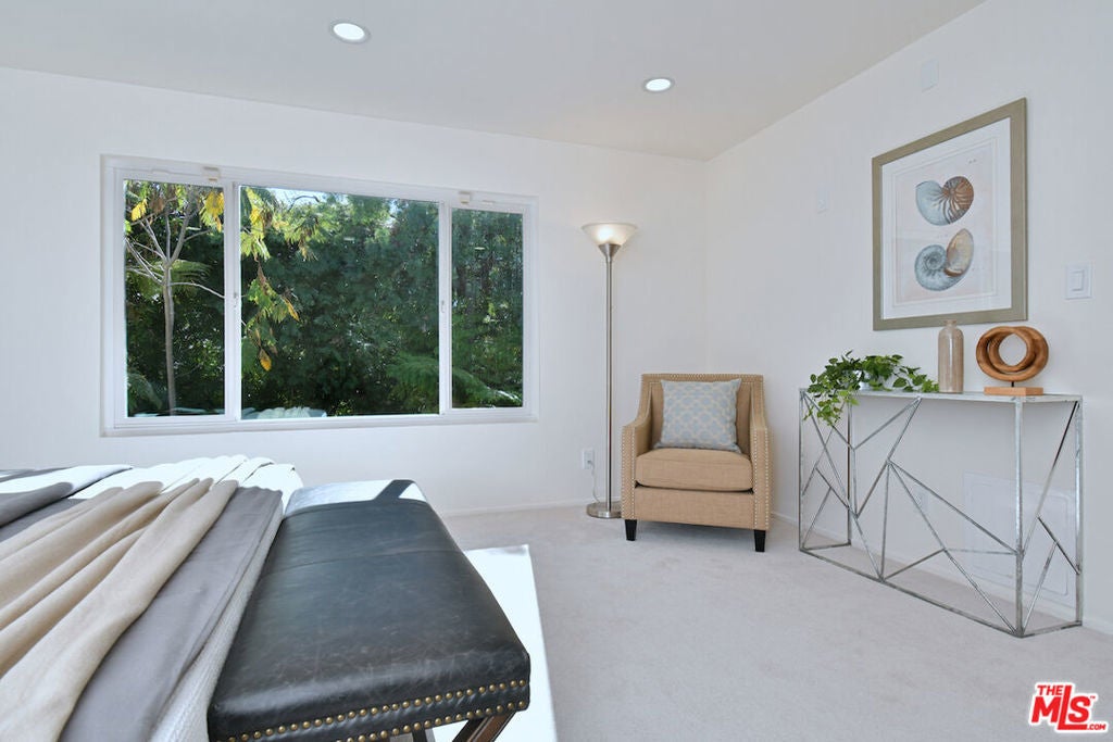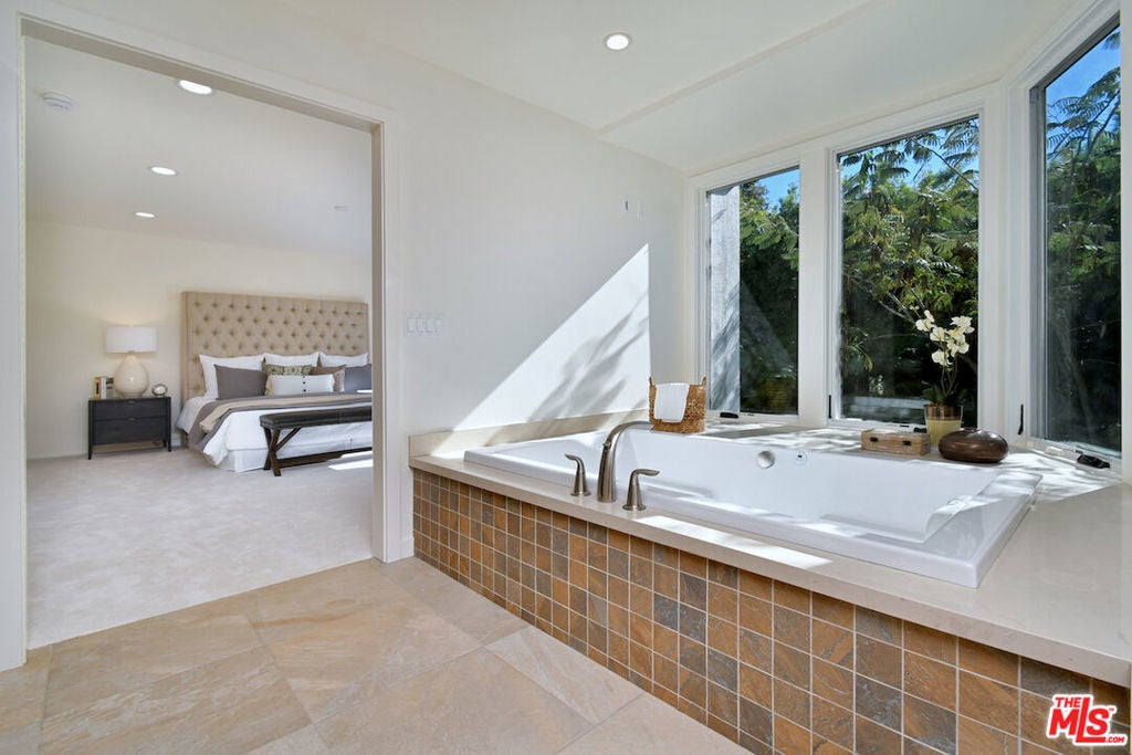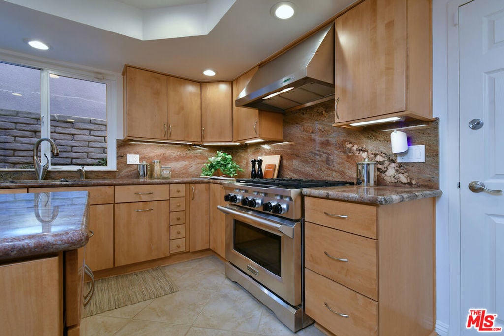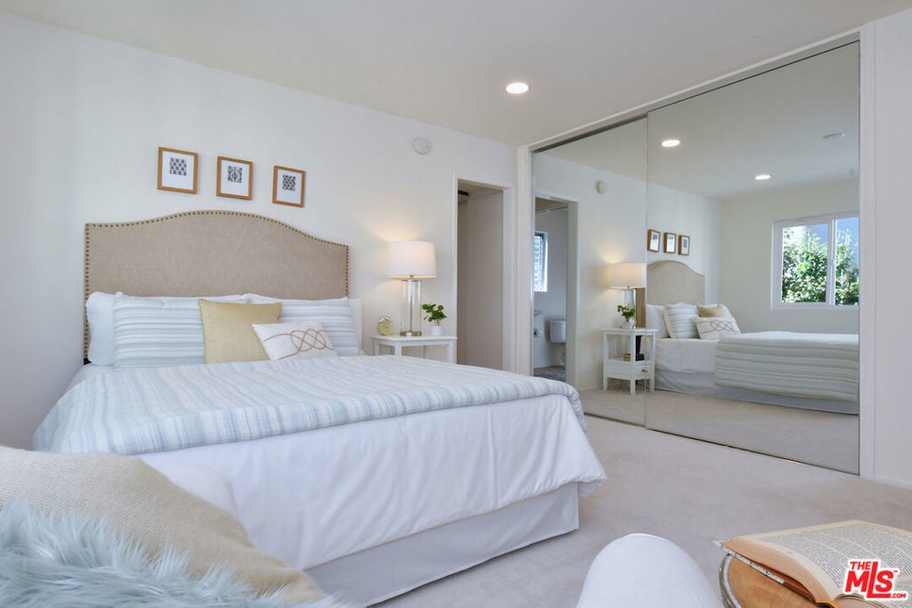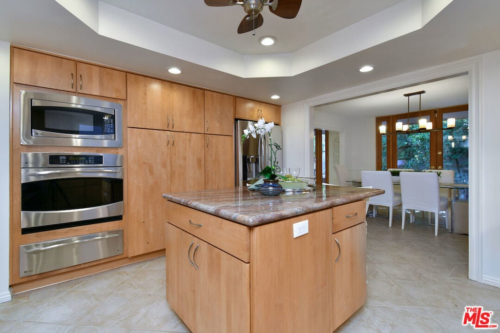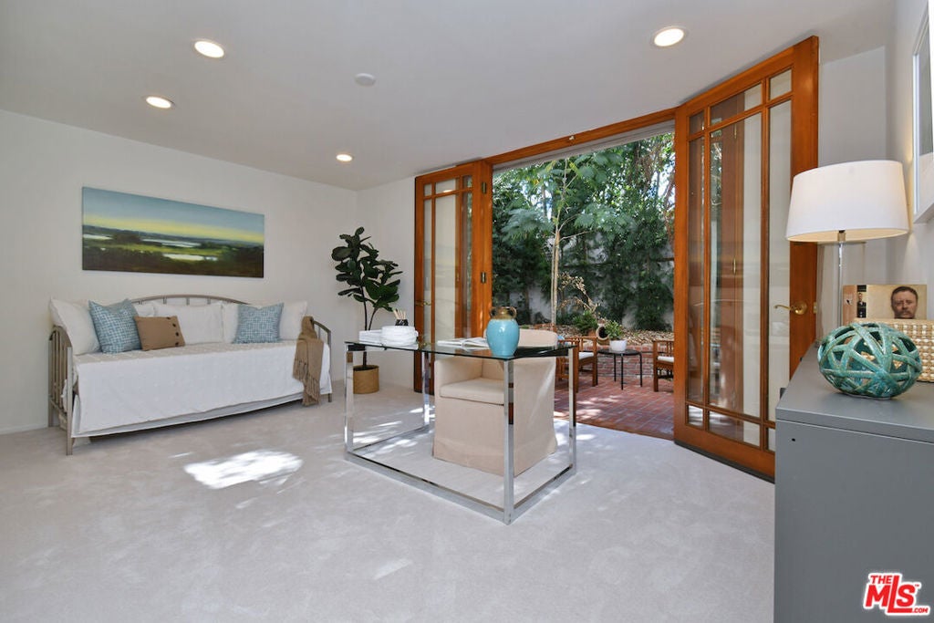 This SFR is located in a 5 unit development. Welcome to 14128 Dickens Street in Sherman Oaks, CA a rare townhouse-style single family residence tucked away in the picturesque Stansbury Estates. Part of an intimate, well-maintained complex of just five homes, this is truly the crown jewel: a private retreat that lives like a single-family home, moments from Whole Foods, top restaurants, and upscale shopping. Step inside to an impressive foyer featuring a charming tile mosaic, soaring ceilings with chandelier and shiplap detail, and a convenient coat closet. From here, the eye is drawn through the expansive living space to French doors framing the lush greenery of your private backyard. The open-concept living and dining areas flow effortlessly together, creating an inviting atmosphere ideal for everyday living or entertaining. Walls of French doors flood the space with natural light and open to a tranquil garden patio, delivering that coveted indoor-outdoor California lifestyle. The kitchen is a chef's dream with a central island, abundant counter space, extensive cabinetry, elegant stainless steel appliances, and direct access to the two-car garage. Completing the main level is a cozy den or media room with a built-in aquarium and French doors to the patio, plus a spacious downstairs suite perfect as a home office or future primary bedroom complete with its own three-quarter bath. Upstairs, two generous bedroom suites each feature their own bath. The luxurious primary retreat includes serene green views, a spa-like bathroom with quartz finishes, frameless glass shower, soaking tub, dual vanity, and a massive walk-in closet with wood floors and hidden attic storage. Outdoors, the private patio is enclosed by tall Podocarpus trees, offering a peaceful setting for morning coffee, along with a charming planter for the avid gardener. 14128 Dickens is a rare gem equally suited as a pied--terre or forever home in a prime Sherman Oaks location. Don't miss your chance to experience it.
