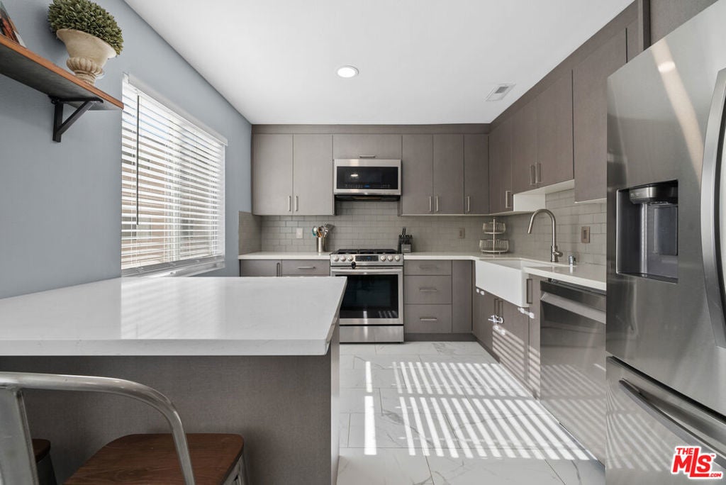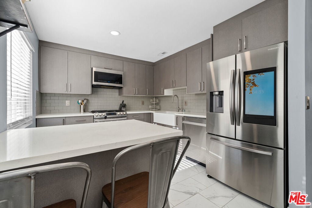 Welcome to this stunning 2-bedroom, 3-bathroom townhouse nestled in the heart of the Cabrini Villas! As you enter the home, the living area features natural lighting creating a bright and inviting space for both relaxing and entertaining. The modern kitchen boasts with stainless steel appliances, a dining table, as well as countertop space to enjoy breakfast with the family .Upstairs, you'll find a spacious master suite with en suite bathroom and walk-in closet. Another spacious bedroom is conveniently located upstairs that is prefect for a kids room, guest room or even an office space. Step outside to enjoy the private patio directly from the primary bedroom as well as another private patio on the main living area. Come visit this immaculate home and make it yours today! Pictures taken previously with seller's furniture. *Available for Lease at $3,900 per month.