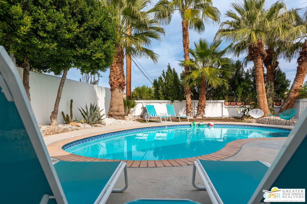 Tucked into the Cathedral City Cove, this gated two-bedroom, two-bath residence offers the privacy and atmosphere of a personal compound. An open-concept layout anchors the interior space including a generous great room with an adjacent dining area. The indoor-outdoor flow leads to resort-style living with nearly a 360 degree yard complete with a pool and hot tub. Multiple spacious patios are designed for entertaining, sunset dining and enjoying the desert's serene backdrop. Positioned on a quiet private street and surrounded by mature desert landscaping, the home embraces eclectic architectural character and relaxed comfort.With a location directly across from Cathedral City's emerging dining and entertainment district, this Cove home offers a uniquely inspiring retreat with all the conveniences of a modern desert lifestyle. Schedule your private showing today.