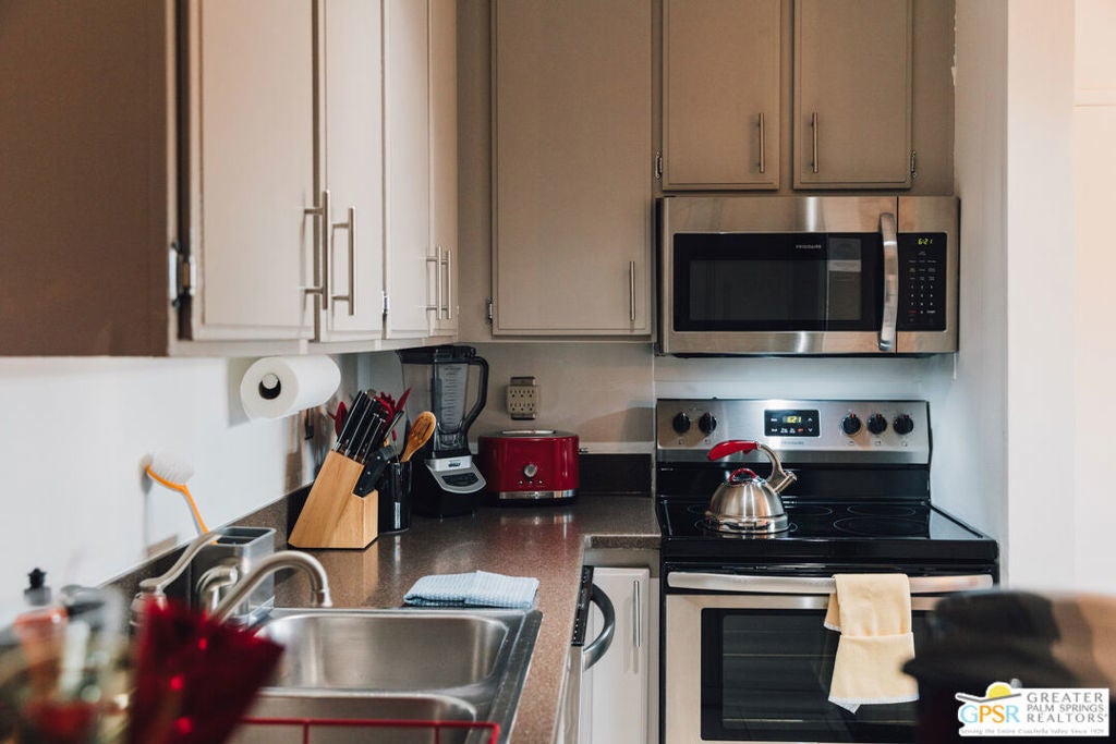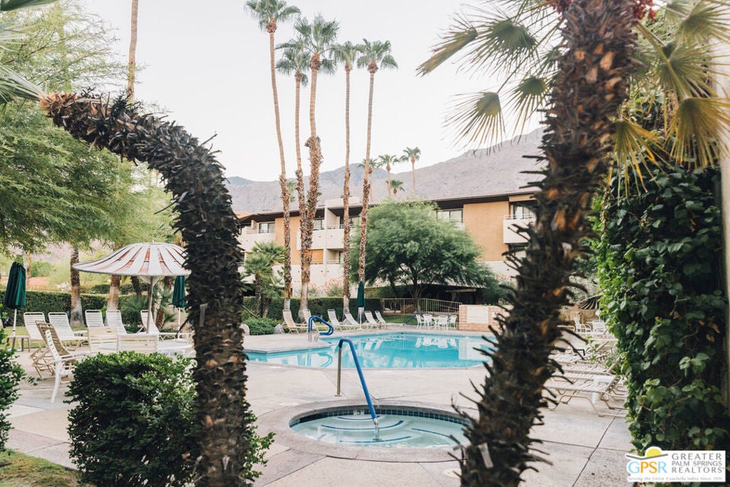 Turnkey Palm Springs 1-Bedroom Condo Short-Term Rental Approved & Income Producing Property. This fully furnished 1-bedroom, 1-bath condo in Palm Springs offers a strong blend of investment potential, vacation rental performance, and turnkey convenience. Positioned on the top floor with mountain views, this unit features a private balcony, mid-century modern design elements, and access to resort-style amenities including a heated pool, multiple hot tubs, and tennis/pickleball courts. This condo is already a proven short-term rental (STR) performer, boasting a 4.96/5 guest rating across 230+ Airbnb stays. The property includes smart lock entry, a fully equipped kitchen, and everything needed for immediate rental or owner use. The gated community offers covered parking, laundry with smart pay, and well-maintained grounds ideal for low-maintenance ownership. Located just a 10-minute walk to downtown Palm Springs, the condo provides quick access to restaurants, shopping, nightlife, and entertainment. It appeals to both vacation renters and long-term tenants, making it an excellent option for buyers seeking a turnkey investment property, a vacation home, or a hybrid live-and-rent model. With its strong occupancy history, flexible use options, and prime location, this condo offers a reliable entry point into the Palm Springs income-property market -buyer to verify all income figures, HOA rules, city rental regulations, and land lease details. Please confirm rental permit requirements directly with the City of Palm Springs.