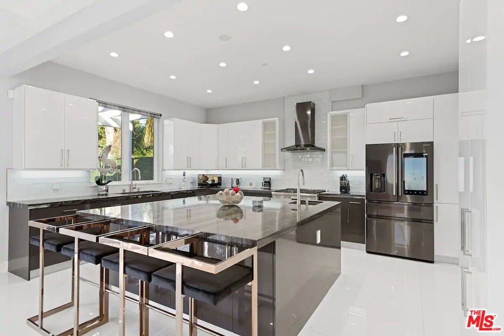 Fully furnished and turn-key. This property is available for short and long-term rental! Situated in prime Sherman Oaks, this brand new construction showcases contemporary architecture enriched with stately columns and exquisite design detail. Arrive to the grand entry hall with soaring 22 ceiling and dramatic curved window wall, filling interiors with natural light. Enter the open-plan living and entertaining spaces with white Italian tile floors, glass stairway railings and coffered living room ceiling. The chefs kitchen showcases custom cabinetry, glass backsplash, quartz countertops and stainless steel appliances. Glass doors connect interiors to the shaded lounging and dining patio, and heated pool/spa. Five bedrooms include the elegant master with custom walk-in dressing room, spa-style bath, soaking tub and glass shower. Features built-in speakers, security system, 2-car garage and spacious motor court. From a quiet neighborhood setting, this masterfully designed home is moments from Ventura Blvds shops, restaurants, Sherman Oaks Galleria, Whole Foods, Fashion square mall, Castle Park, and the award winning Kester school district. Also available with Furniture!