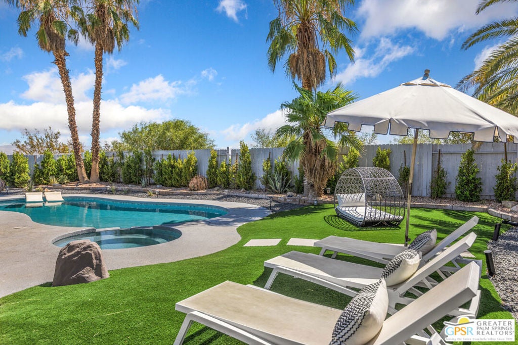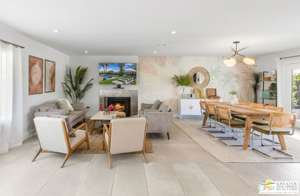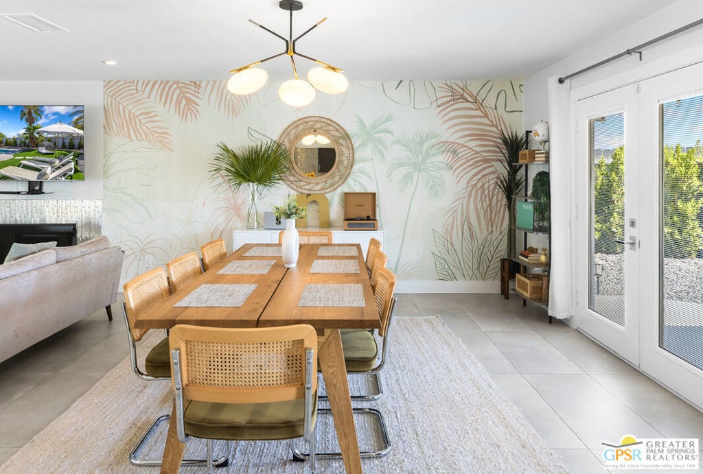 Welcome to the Palm Springs lifestyle, where endless desert skies meet California Cool. Whether you dream of a full-time residence or a successful vacation investment, this stylishly updated, move-in-ready home is perfectly positioned in a central location, just minutes from the downtown Design District, shopping, and award-winning dining. Step inside a flowing, open-concept space designed for effortless entertaining. The chef's kitchen is the heart of the home, featuring stainless steel appliances and an oversized 8-foot quartz waterfall edge island ideal for culinary creations and casual gatherings. Sleek 17x35 tile flooring throughout provides a seamless cohesive aesthetic. The Primary Suite boasts a custom Elfa closet system, en-suite bathroom with an over-sized walk-in tiled shower and convenient access to the beautiful backyard. Enjoy spectacular sunsets and unobstructed west mountain views from the front patio, screened by a mid-century breeze-block wall, while the backyard is your true resort experience, featuring a pebble-tec pool with integrated spa and a spacious covered patio perfect for year-round relaxation. Currently a successful Airbnb, this property offers an immediate return. Plus, you'll enjoy lower energy costs thanks to the low-monthly leased solar system. Situated on a cul-de-sac with no power lines in sight. Your turnkey oasis awaits, simply bring your suit and dive into the good life!