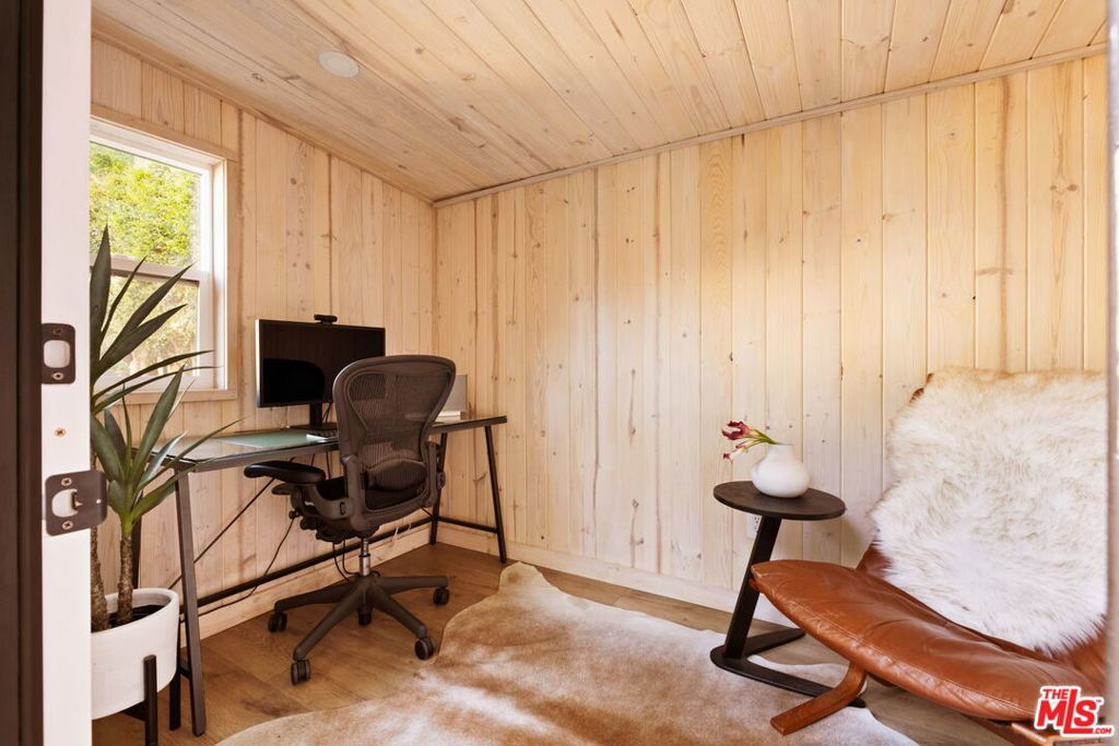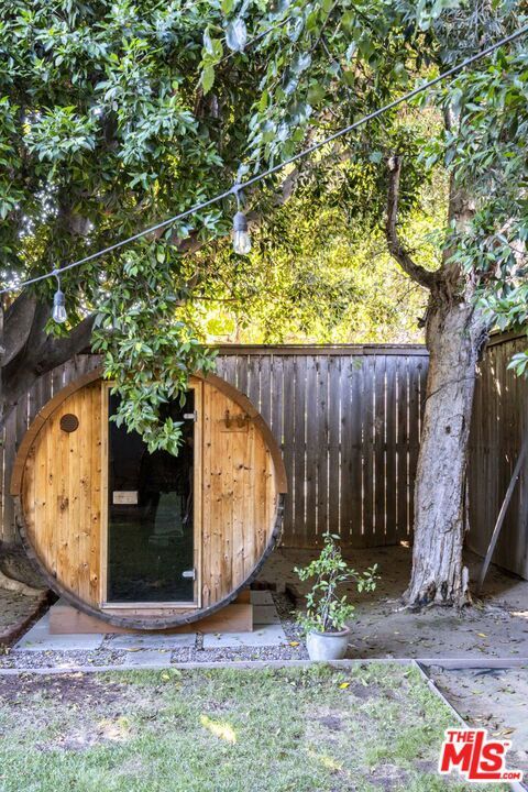 Set midblock beneath a stately elm, this updated yet charming three-bedroom two-bathroom Sherman Oaks home blends original character with thoughtful modern improvements. Sunlit interiors feature refinished wood floors, new windows with custom shutters, and a stylish kitchen with designer finishes. The primary bedroom opens to the backyard through French doors, creating an effortless indoor-outdoor connection. Surrounded by mature landscaping for true privacy, the backyard is exceptional in both scale and lifestyle offerings with a beautiful lawn, a Thermory four-person barrel sauna, and a custom-built detached office with power and AC that is ideal for working or creating at home. Located near highly regarded Kester Elementary and just moments from Ventura Boulevard's dining, shopping, and commuter access, this home retains its charm while delivering modern comfort at every turn.