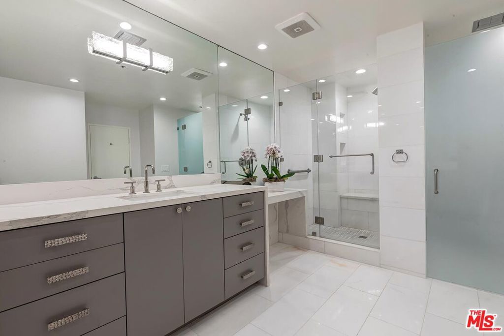 If you've seen this unit before, you won't recognize it now. Recently and tastefully redone spaces filled with natural light featuring gorgeous light-wood floors, high ceilings, remodeled kitchen/baths, and the obligatory striking views of the hillsides, greenery, city lights, and the iconic Wilshire Corridor. Fantastic open floor plan for entertaining. Great room with large living and dining areas including a fireplace and wet bar opens to the main view balcony. Separate beautiful newer powder room. True cook's kitchen with top stainless appliances and quaint breakfast area flowing to a second view balcony. Massive primary suite with a large sitting/office area opens to the second view balcony. The suite also exhibits an exquisitely redone modern bathroom, a large walk-in closet, and newly added wall closets. Sizable guest bedroom suite on the opposite side of the unit also has a redone bathroom, views, and main balcony access. The architecturally significant full-service Mirabella complex is located in the premiere eastern section of the Wilshire Corridor one block West of Beverly Glen Blvd and proximate to the best of Beverly Hills, Century City, and the Westside. Amenities include EV charging stations, 24 hour valet, concierge, on-site management, fitness center, pool, spa, extra storage, EQ Insurance, and a fabulous multipurpose facility with a fully-equipped kitchen. Recently renovated hallways and elevators, one of the prettiest lobbies/foyers on the Corridor, and easy ingress/egress from Holmby Ave south of Wilshire Blvd add to the already strong appeal of the Mirabella.