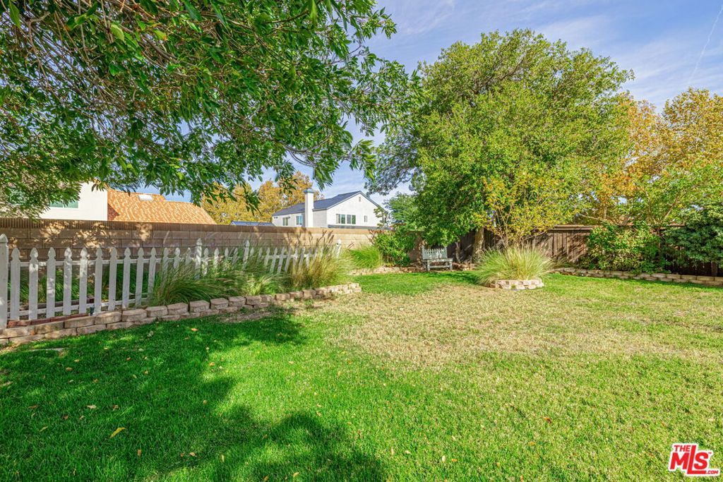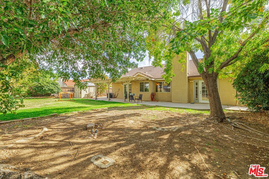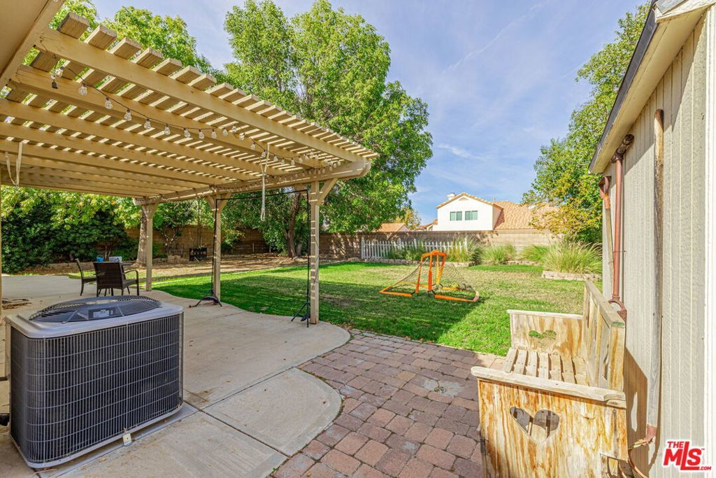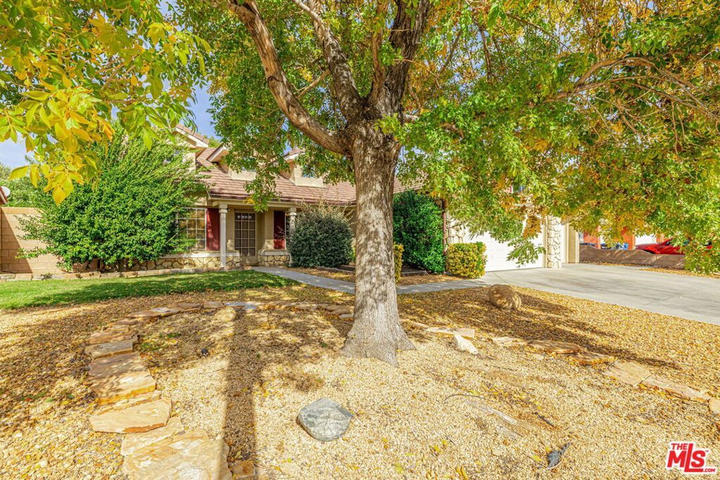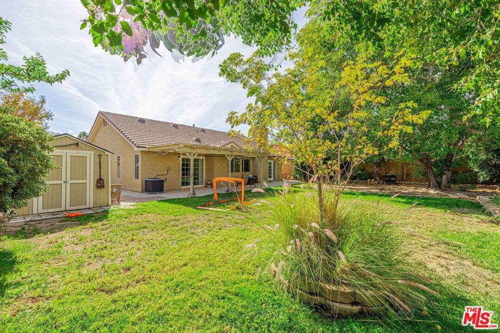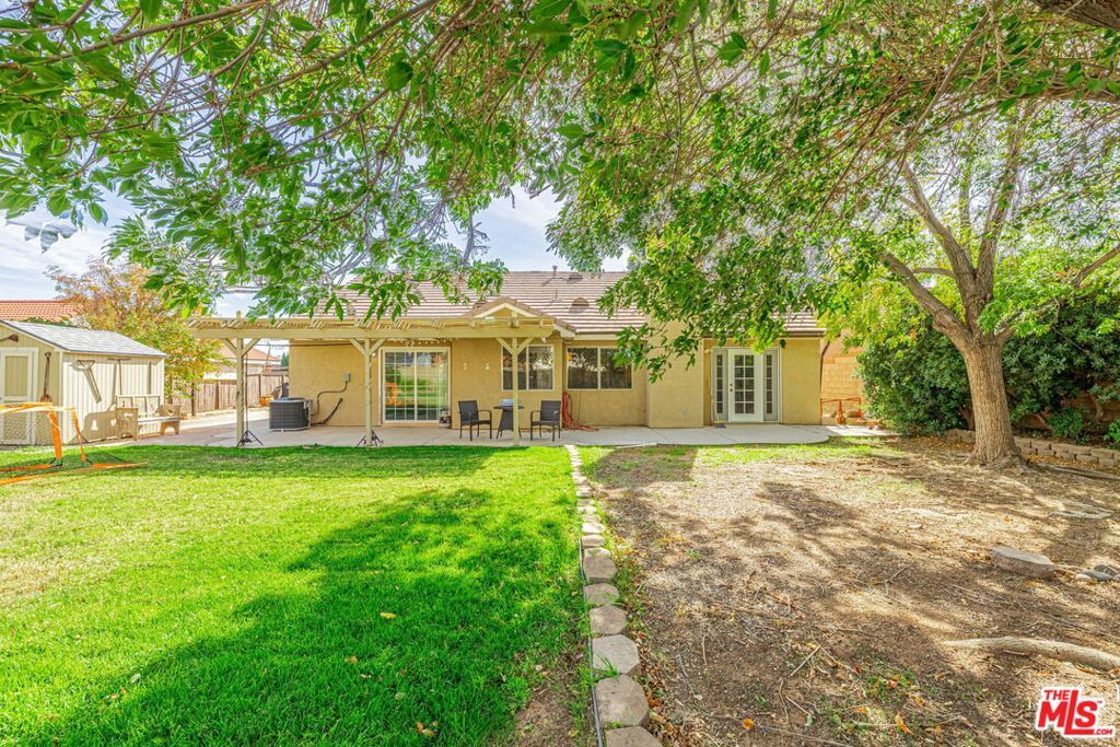 Welcome to 5811 Corinthian Place, a charming 4-bedroom, 2-bathroom single-story home nestled in a desirable West Lancaster neighborhood. Built in 1992, this well-maintained 1,711 sq. ft. residence sits on a spacious 10,021 sq. ft. lot, offering the perfect blend of comfort, functionality, and outdoor living.Step inside to an open and inviting living space featuring vaulted ceilings, fresh interior paint, and abundant natural light. The cozy living room flows seamlessly into the dining area and kitchen, creating an ideal layout for everyday living and entertaining. The kitchen boasts ample cabinetry, a breakfast bar, and views of the backyard. All four bedrooms are generously sized, with the primary suite offering a private en-suite bathroom and walk-in closet. A convenient indoor laundry room adds to the home's practicality. New Air Conditioning installed in 2023. Newer refrigerator is included. The backyard is a true retreat, complete with a covered patio adorned with string lights perfect for evening gatherings. Enjoy the lush lawn, mature trees, and a dedicated play area with a basketball hoop and soccer goal, making it a family-friendly paradise. A sturdy storage shed provides extra space for tools and toys. The front yard features low-maintenance desert landscaping with rock accents and an expansive driveway leading to a 3-car pull through garage, with a large concrete slab in rear. Tucked away on a quiet cul-de-sac in an established West Lancaster community, this home is just minutes from highly regarded Westside School District schools, parks, shopping, and the Antelope Valley Freeway. Enjoy the convenience of suburban living with easy access to everything West Lancaster has to offer.This move-in-ready gem is perfect for families, first-time buyers, or anyone seeking a comfortable and stylish home in West Lancaster. Don't miss out schedule your tour today!