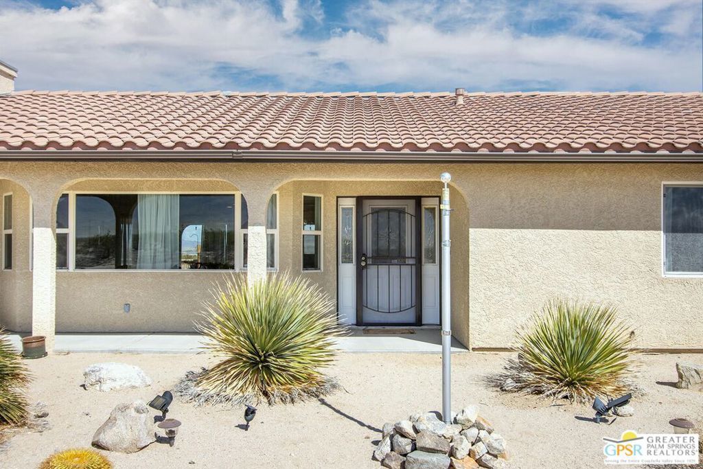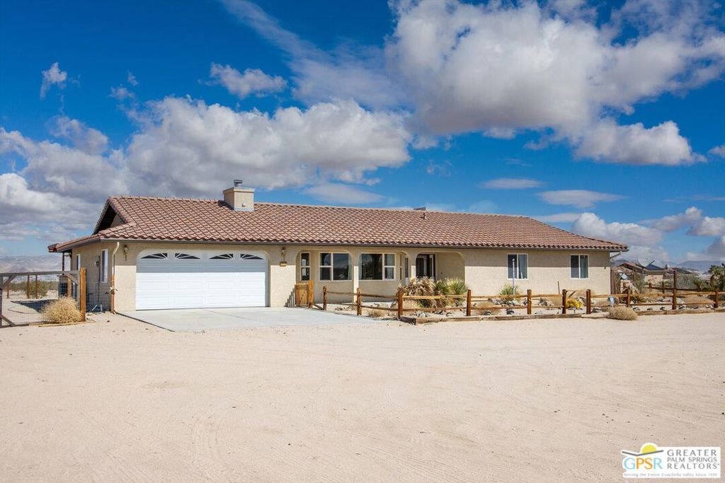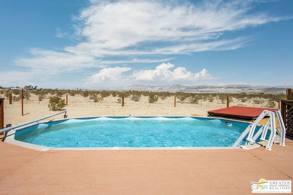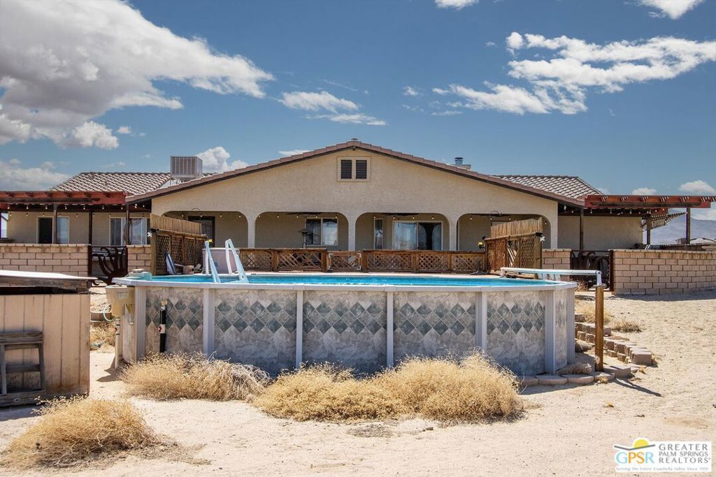 Profitable Desert Oasis, Turnkey Short-Term Rental or Private Retreat Welcome to 72772 Nandina Street, Twentynine Palms, a thriving short-term rental and peaceful desert haven nestled in the heart of the High Desert. Whether you're an investor seeking a high-performing income property or a nature lover looking for a private retreat near Joshua Tree National Park, this home offers the ideal blend of comfort, style, and seclusion. Property Highlights:3 Bedrooms | 2 Bathrooms Nearly $70,000 in Annual Short-Term Rental Income Turnkey Opportunity - Fully Furnished & Guest-Ready Private Well with Water Filtration System - No Water Bill Above-Ground Pool, Hot Tub, Fire Pit & Hammocks2-Car Attached Garage with Built-In Storage Set in an unincorporated area of Twentynine Palms, this spacious home is just 10 minutes from the Marine Corps base making it a great candidate for both short- and long-term rentals. Inside, you'll find warm Saltillo tile flooring throughout the main living spaces, paired with durable luxury vinyl plank (LVP) in the bedrooms for both style and practicality. The open-concept layout is enhanced by elevated ceilings and expansive windows, flooding the home with natural light and breathtaking desert views. The primary suite is a true retreat with a large walk-in closet, private patio access, and a luxurious en suite bath featuring dual vanities, a soaking tub, and a beautifully tiled shower. Outdoor living is a dream with multiple relaxation zones: soak in the hot tub, cool off in the pool, sway in a hammock, or gather around the fire pit under the stars. The covered patio is perfect for morning coffee or evening entertaining. For year-round comfort, the home includes both a central HVAC system and energy-efficient evaporative cooling, offering flexible climate control and energy savings. With a quiet, less-traveled entrance to Joshua Tree National Park just minutes away, this home strikes the perfect balance between accessibility and peaceful seclusion.