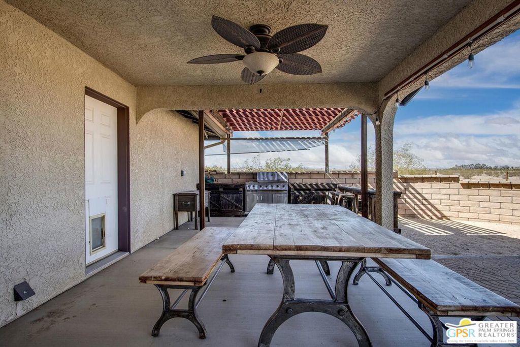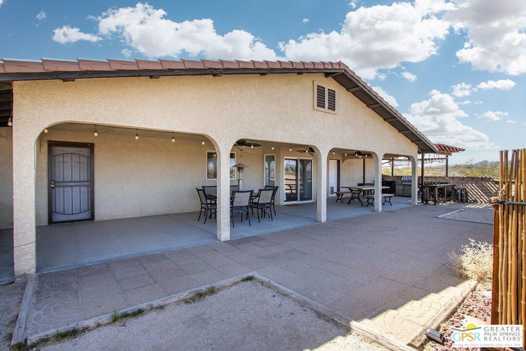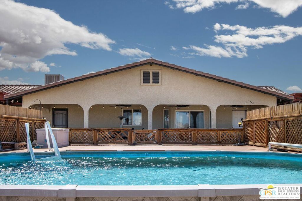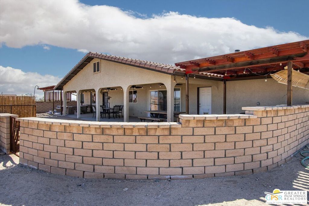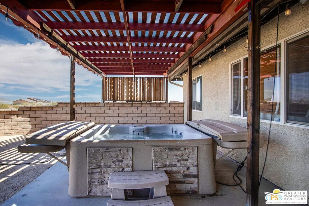 Profitable Desert Oasis, Turnkey Short-Term Rental or Private Retreat Welcome to 72772 Nandina Street, Twentynine Palms, a thriving short-term rental and peaceful desert haven nestled in the heart of the High Desert. Whether you're an investor seeking a high-performing income property or a nature lover looking for a private retreat near Joshua Tree National Park, this home offers the ideal blend of comfort, style, and seclusion. Property Highlights:3 Bedrooms | 2 Bathrooms Nearly $70,000 in Annual Short-Term Rental Income Turnkey Opportunity - Fully Furnished & Guest-Ready Private Well with Water Filtration System - No Water Bill Above-Ground Pool, Hot Tub, Fire Pit & Hammocks2-Car Attached Garage with Built-In Storage Set in an unincorporated area of Twentynine Palms, this spacious home is just 10 minutes from the Marine Corps base making it a great candidate for both short- and long-term rentals. Inside, you'll find warm Saltillo tile flooring throughout the main living spaces, paired with durable luxury vinyl plank (LVP) in the bedrooms for both style and practicality. The open-concept layout is enhanced by elevated ceilings and expansive windows, flooding the home with natural light and breathtaking desert views. The primary suite is a true retreat with a large walk-in closet, private patio access, and a luxurious en suite bath featuring dual vanities, a soaking tub, and a beautifully tiled shower. Outdoor living is a dream with multiple relaxation zones: soak in the hot tub, cool off in the pool, sway in a hammock, or gather around the fire pit under the stars. The covered patio is perfect for morning coffee or evening entertaining. For year-round comfort, the home includes both a central HVAC system and energy-efficient evaporative cooling, offering flexible climate control and energy savings. With a quiet, less-traveled entrance to Joshua Tree National Park just minutes away, this home strikes the perfect balance between accessibility and peaceful seclusion.