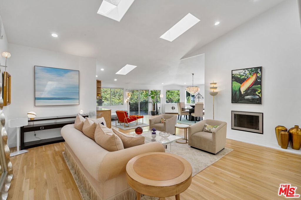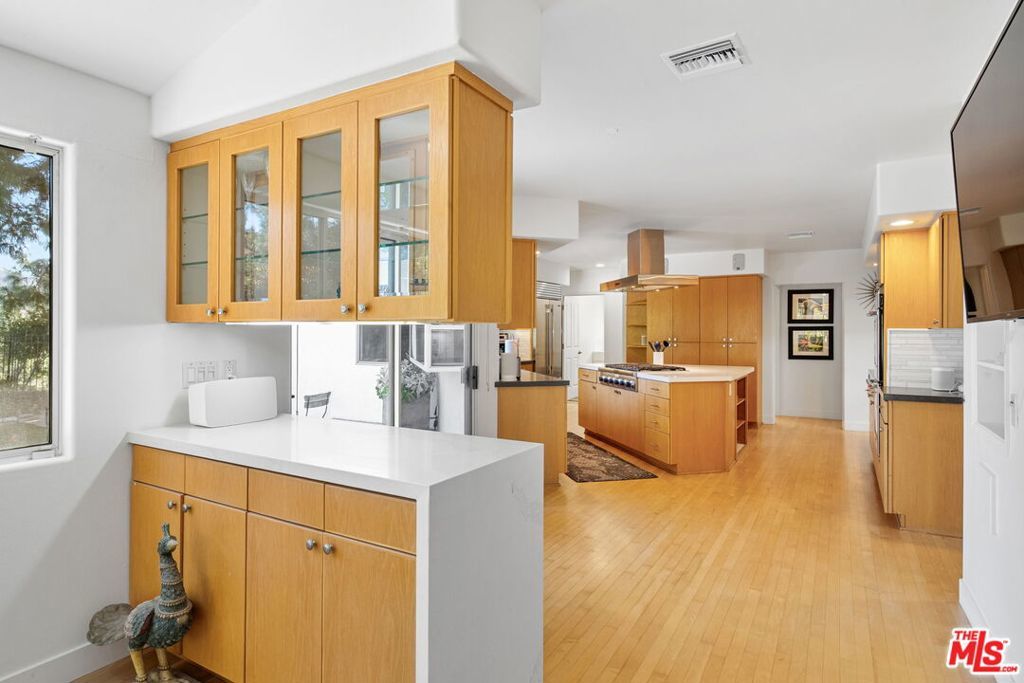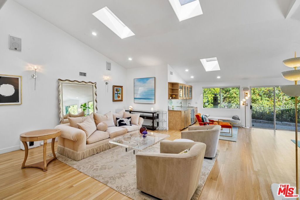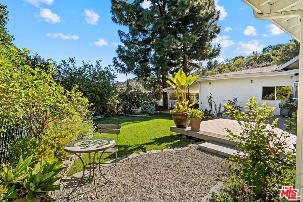 Located in the highly coveted Fryman Canyon. For those that value privacy and seclusion in a canyon setting, this home is at the end of the street and up a long driveway situated on a knoll elevated far above the street. Surrounded by nature and beautiful landscaping, this is a sprawling one-level 4 bedroom, 3 bathroom home plus separate media room/den. Large formal skylit entry and hardwood flooring throughout most of the home, spacious entertaining living room with soaring ceilings, lots of skylights and a fireplace with an open concept to the dining room and a large chef's kitchen with newer stainless-steel appliances all with pleasant views to the backyard and canyon. Beautiful private primary suite with walk-in closet and luxurious bathroom looking out to the lovely backyard. Other features include a nice size new TREX deck leading to the beautifully private flat grassy yard with room for pool and separate tranquil outside entertaining areas with peaceful fountains, a separate laundry room, 2 car garage with direct access into the home and an additional carport. A very special offering.