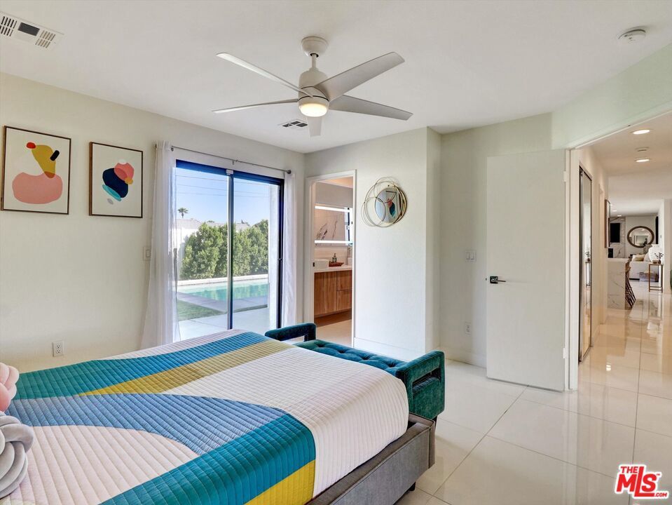 Welcome to 1920 N San Gorgonio Rd, a striking residence in the heart of Palm Springs that perfectly balances modern design with timeless desert elegance. From the moment you arrive, the curb appeal impresses with lush, manicured landscaping and a facade that marries clean contemporary lines with the classic Palm Springs vibe. Inside, soaring ceilings and an open-concept layout create a bright, airy atmosphere, while designer finishes and a refined color palette add sophistication to every space. The gourmet kitchen is a true showpiece, equipped with top-tier stainless steel appliances, custom cabinetry, and an oversized island ideal for casual dining or entertaining. The adjacent dining and living areas flow seamlessly, offering both comfort and style for everyday living and special gatherings alike. Step outdoors and discover your own private retreat. A sparkling pool and spa sit at the center of the backyard oasis, complemented by a massive covered pergola and shaded lounge areas. Eight-foot privacy fencing, lush greenery, and serene mountain views ensure the ultimate in relaxation and seclusion, perfect for enjoying the Palm Springs lifestyle year-round. Recent upgrades elevate the home even further, including a new AC system, solar panels, security cameras, and more. 1920 N San Gorgonio Rd is a home that captures the essence of Palm Springs living modern, stylish, and effortlessly comfortable.