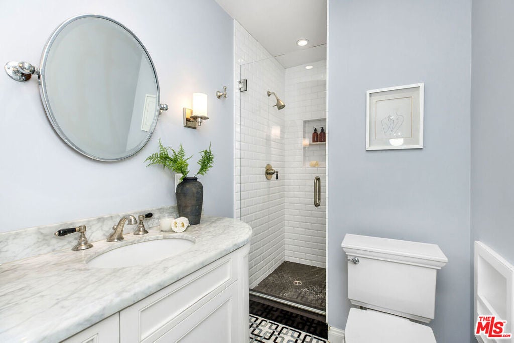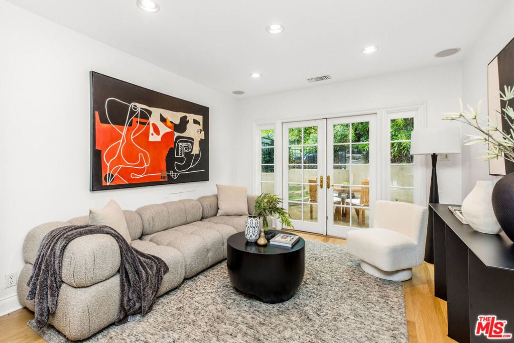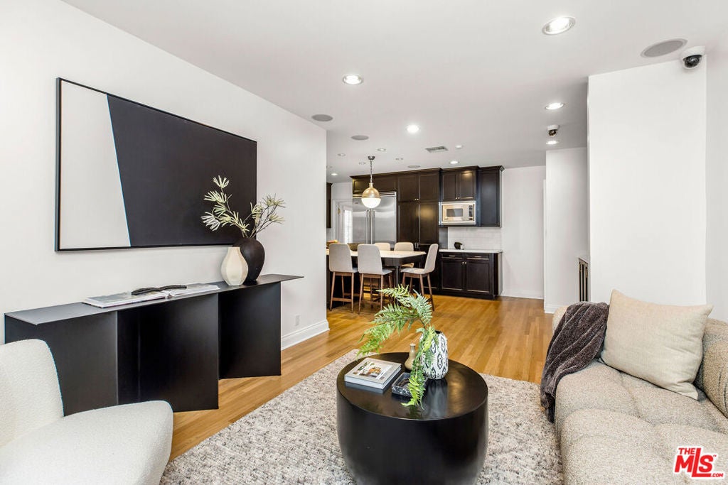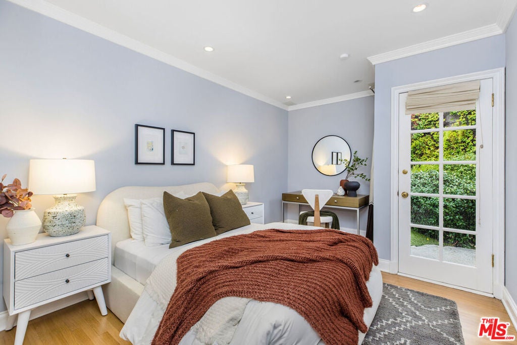 Nestled in the Hollywood Hills, this elegantly updated, fully gated compound with a pool awaits. This 3-bedroom, 2-bathroom home features a gourmet kitchen with a 10-foot island, custom cabinets, Caesar stone countertops, and Viking appliances, including a refrigerator, range, microwave, and Bosch dishwasher, as well as a Miele washer and dryer. Attention to detail is evident throughout this home. Gorgeous, newly finished hardwood floors, built-in closets, Walker Zanger tile, built-in speaker/audio system, high end security system with sixteen cameras, recessed lighting controlled by a Lutron lighting system, crown moulding, wainscoting in the dining room, central air and heat, and hand-selected light fixtures enhance the space. The serene backyard is easily accessible throughout the home and is a perfect place to relax and enjoy the outdoors with a heated pool and spa, not to mention the soothing water fountain. Ideally located, the home is close to all the best restaurants and shops the city has to offer and is just minutes away from the world-famous Runyon Canyon. This won't last long.