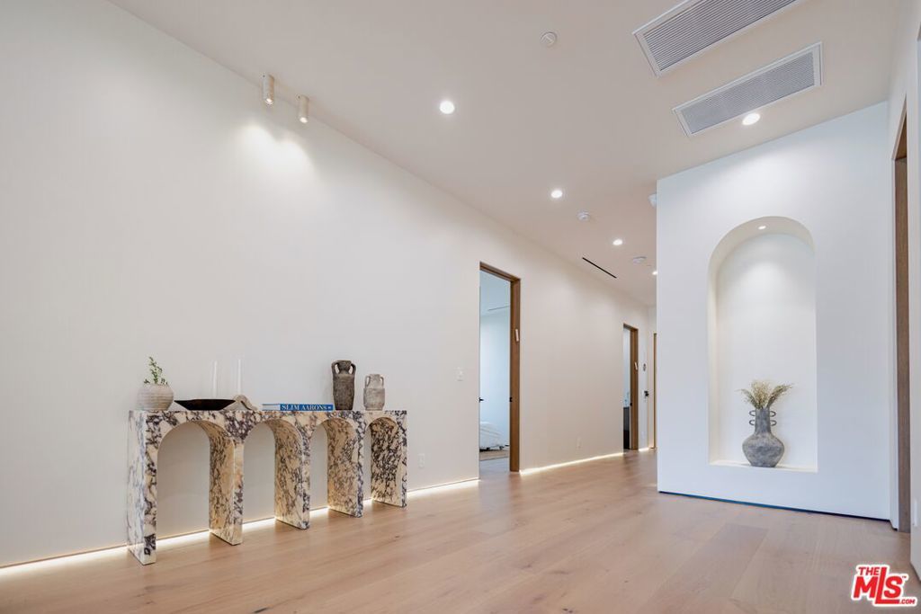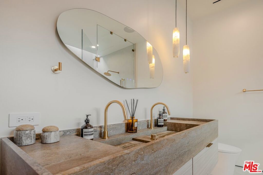 Stunning newly constructed 4-bedroom, 3-bath residence showcasing modern Mediterranean design and high-end finishes throughout. This home features an open, airy floor plan with soaring ceilings, abundant natural light and seamless indoor-outdoor flow. The gourmet kitchen includes a walk-in pantry, while the backyard outdoor kitchen is perfect for entertaining. The luxurious master suite offers a spa-style bath and generous storage. Enjoy a resort-style backyard with a pool, Jacuzzi, waterfall, outdoor shower, olive and lemon trees, and a small herb garden. Custom retractable screens, ceiling fans, and heaters make the patio enjoyable year-round. Timeless finishes and a prime location walking distance to Ventura Blvd's shops, cafes, and restaurants complete this exceptional home.