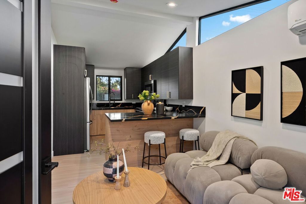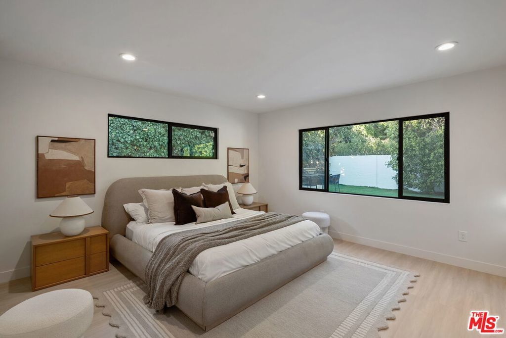 Nestled in the vibrant heart of Sherman Oaks, this gated mid-century gem graces a generous, flat lot, reimagined through a meticulous full renovation that offers the comfort and quality of a new home, with the character and charm of timeless design. Step inside to discover a bright, open-concept layout highlighted by sun-filled living spaces. Meticulously curated finishes elevate the everyday: sleek marble-tiled bathrooms that exude spa-like serenity, and a bespoke chef's kitchen outfitted with premium appliances and flowing countertops crafted for both intimate family meals and show stopping gatherings. A beautiful backyard retreat awaits, where manicured lawns, mature hedging, and outdoor kitchen and grill area create the perfect stage for al fresco adventures. Accommodations abound with four sun-drenched bedrooms in the main residence, plus a versatile one-bedroom ADU complete with its own full kitchen ideal for guests, home office, or rental potential. Ample parking seals the deal: a covered carport pairs with an expansive gated driveway that accommodates five or more cars with ease. In one of the Valley's most coveted enclaves, this is more than a residence: it's a rare canvas for your story, fully realized and ready to inspire.