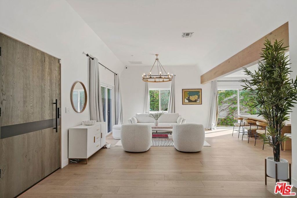 Perched up on a little hill behind privacy hedges you'll discover a completely renovated 3 bed/2 bath home plus detached two-story ADU in peaceful Hancock Park. This mini-compound is a true stunner managing to capture the perfect blend of classic Tudor charm with all the modern amenities. Enter through the gates to find a lovely front terrace perfect for entertaining or relaxing with a glass of wine by the fire pit. Inside you'll swoon over the gorgeous oak floors, beautiful windows flooding the home with natural light, and the open-concept kitchen/dining area with oversized island, beautiful beamed ceiling, and fully integrated high-end Miele and Thermador appliances. Three spacious bedrooms, including a primary suite with beautifully designed walk-in closet, modern glass fireplace, and spa-like en suite bath, make the main home a destination you won't want to leave. Out back you'll discover the verdant grassy yard, huge privacy hedges, spa, and built-in BBQ area, as well as detached two-story ADU perfect for anyone seeking a versatile live/work space or with extended family visiting for a spell. The ADU has a spacious ground-floor great room with a kitchenette and bath, plus a second floor with separate entrance, a bright and airy bedroom, another full bathroom, and a kitchenette. With its fusion of contemporary and classic aesthetics, generous size, and prime location close to all that Los Angeles has to offer, this property beckons you home. Close to great restaurants like Republique, Cafe Gratitude, Highly Likely, and Paper or Plastik, plus spots like LACMA, Sprouts, Olympic Spa, and Wilshire Country Club.