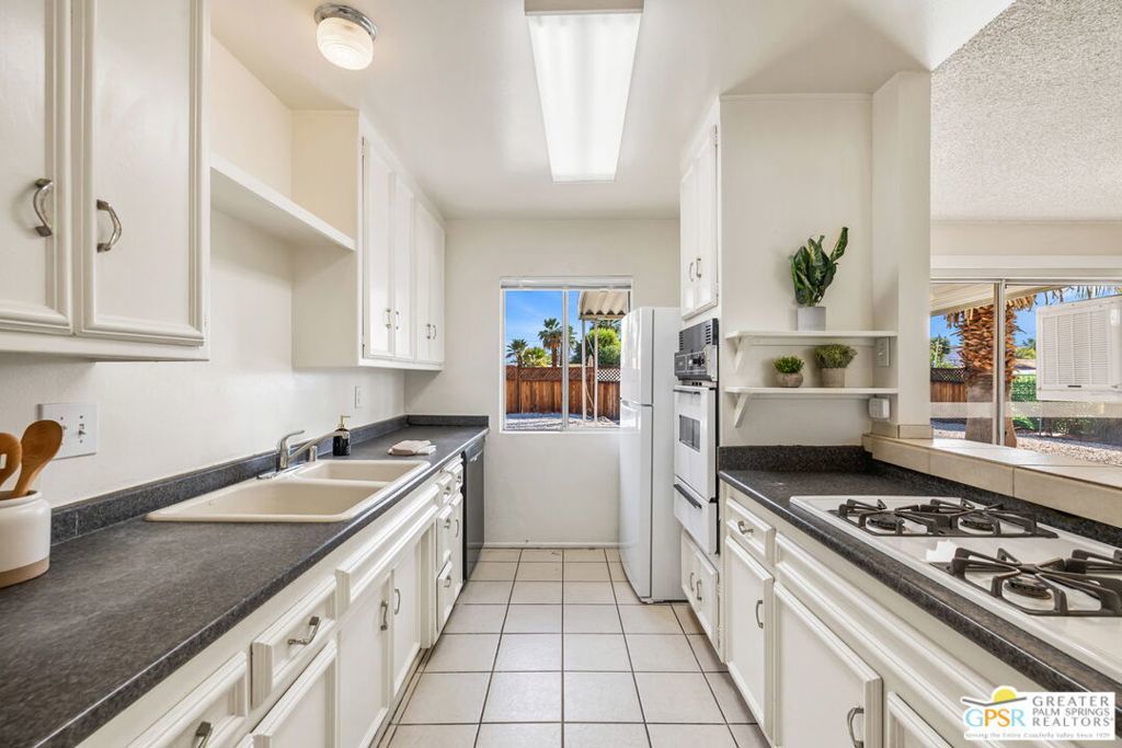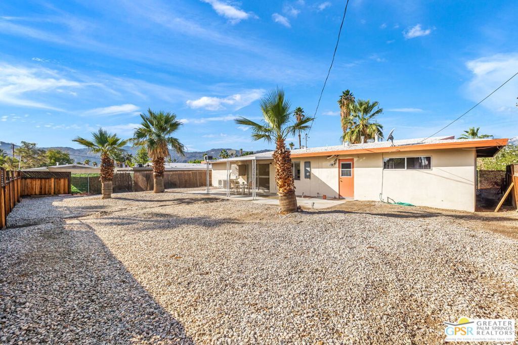 Situated on an elevated, oversized lot at the end of a quiet cul-de-sac, this home blends mid-century charm with thoughtful modern updates. Step inside to expansive open living spaces framed by gorgeous sunset views from the front windows. The expansive backyard is perfect for entertaining, gardening, or enjoying your morning coffee as the sun rises. Just beyond the back gate, you'll find a spacious community pool for effortless relaxation. Some valuable upgrades include: new electrical panel, newer oven and stovetop, and a York heating and air system with an energy-efficient mini-split keeping the home comfortable year-round while helping reduce energy costs all installed in 2025. The oversized two-car garage provides ample room for vehicles, storage, or a workshop. Located just minutes from the Palm Desert Soccer Park and the vibrant center of Palm Desert, this home offers character, comfort, and exceptional value in a premium location. Whether you're a first-time buyer or searching for a desert getaway, this welcoming property is ready to make you feel right at home.
