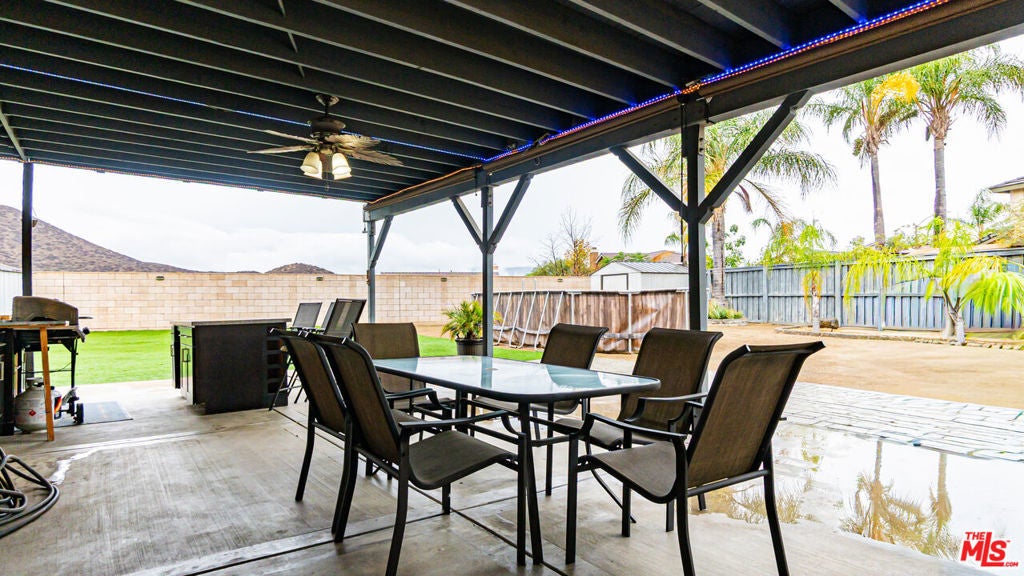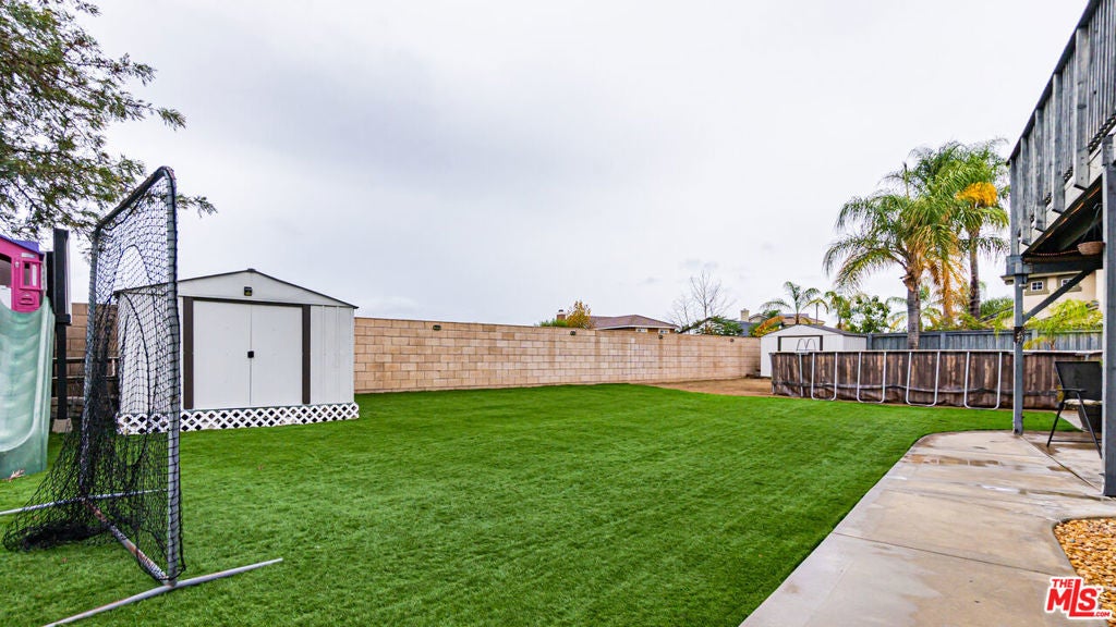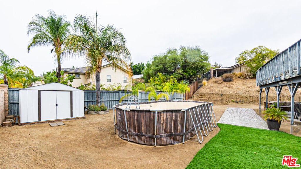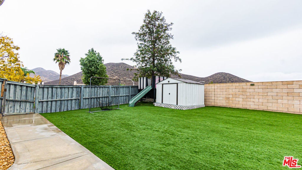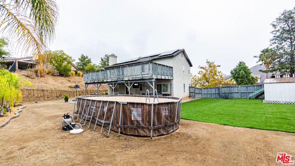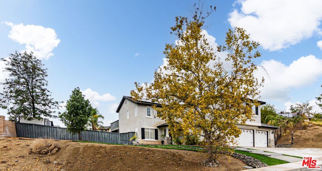 Beautifully Upgraded 5-Bedroom Home On Huge Corner Lot in Lake Elsinore! Sitting on just over 19,000 square feet, this 2-Story Stunner has undergone extensive remodeling & has designer finishes throughout. Modern open-concept layout. Formal living room area w/ soaring dual-height ceilings. Full bar area w/ boxed-in ceiling. Family room w/ custom wall inlays & built-ins. Stunning Chef's kitchen w/ custom shaker cabinetry, quartz countertops, subway tile backsplash, center island w/ pendant lighting, stainless-steel appliances, wine cooler, & walk-in pantry. Adjacent dining area w/ stone fireplace. Spacious 2nd floor bedrooms w/ vaulted ceilings. Master Bedroom Suite w/ Huge wrap-around balcony (views of the Lake & Stadium), dual vanities, soaking tub, & standing shower. Huge private backyard w/ covered patio, grassy area, playhouse, & shed - perfect for entertaining! Laundry room w/ storage. Sunrun solar system. 3-car garage w/ storage & plenty of driveway parking (3rd garage space has drive-thru door into backyard). Full front & rear irrigation systems. Just minutes to the best shopping, dining, & entertainment the area has to offer, as well as excellent local schools, parks, hiking trails, & Lake Elsinore itself. A unique opportunity that is not to be missed - turnkey!