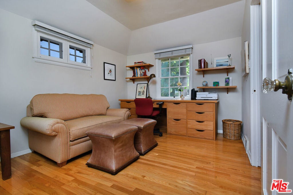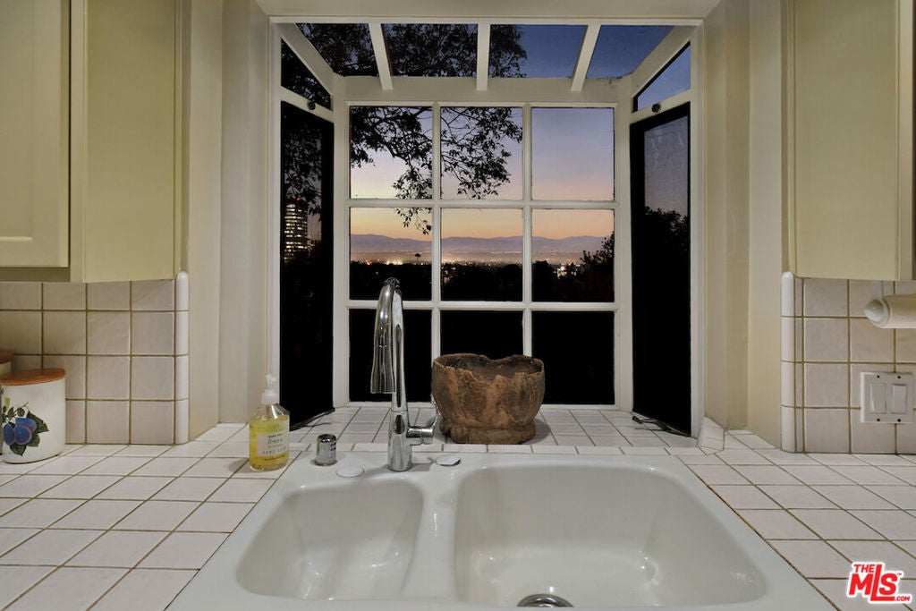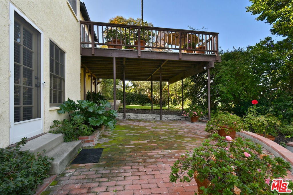 Character-filled home with classic details and beautiful views, located south of Ventura Blvd. in the desirable Sherman Oaks foothills. This charming property features natural oak hardwood floors, wood-beamed ceilings, and French doors that open to an expansive deck surrounded by greenery. The inviting living room includes a wood-burning fireplace with a mantle and city views. A formal dining room adjoins the kitchen, which offers a breakfast bar, pantry, and a service porch with a guest bath. Upstairs are two bedrooms, while the primary suite is located downstairs and features a spacious remodeled bathroom with a large glass shower, vanity, and walk-in closet. A French door from the suite opens to the garden and brick patio. The beautifully landscaped yard includes a large grassy area and mature plantings, providing a peaceful outdoor retreat. Set back from the street for privacy, this special home is being offered for the first time in 37 years. Recent upgrades include a new roof, copper plumbing, and newer central air and heat. A must see to appreciate!