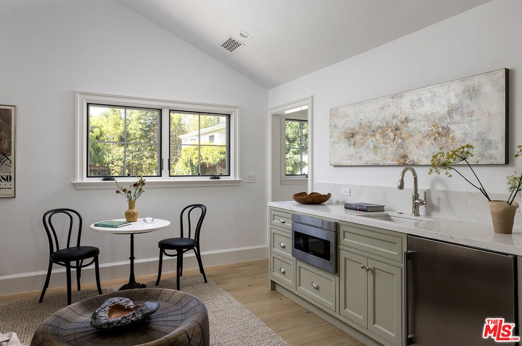 Tucked away on a quiet, tree-lined street North of Montana, 2515 Marguerita Avenue offers a refined blend of coastal ease and architectural elegance. This brand-new, single-level home includes a fully equipped guest house. Inside, the naturally lit interior contains an open living space and bar for easy gatherings. Beam ceilings, a chef's kitchen with Sub-Zero, Viking, and Miele appliances, and a serene indoor-outdoor flow make everyday living feel like a retreat. Each of the four ensuite bedrooms offers garden views and walk-in closets. A private, gated entry leads to a landscaped yard with a pool, terrace, and generous porchideal for warm Santa Monica evenings. Moments from the shops and cafs of North Montana Avenue and the Brentwood Country Mart, and just blocks from the beach and top-rated schools, this home balances privacy, comfort, and an effortless sense of place.