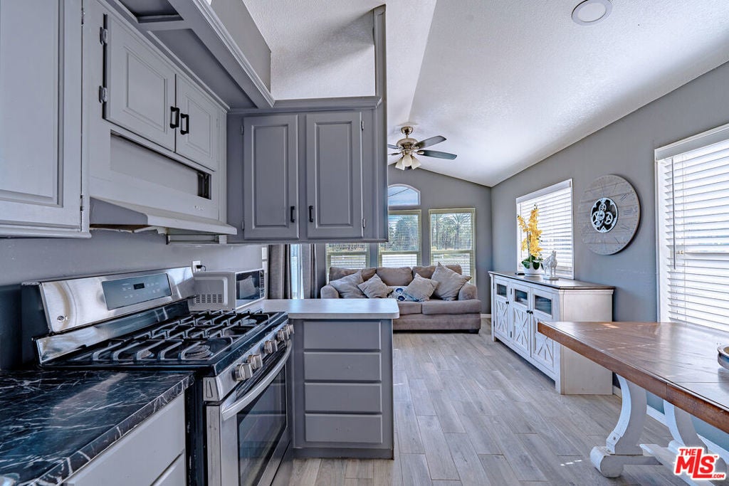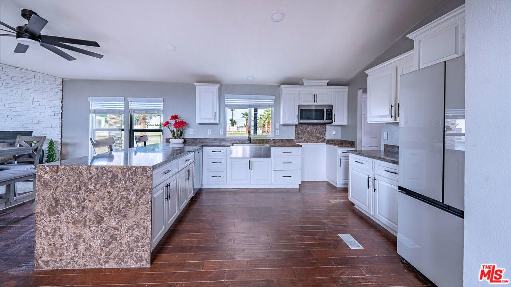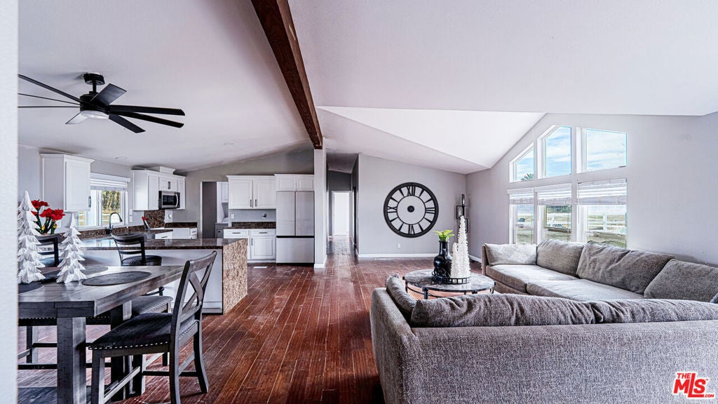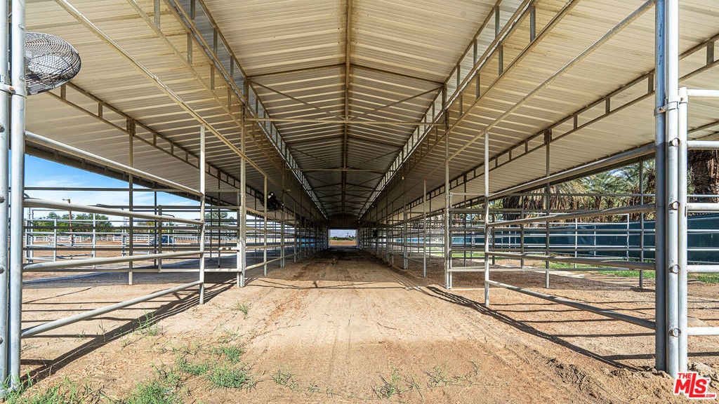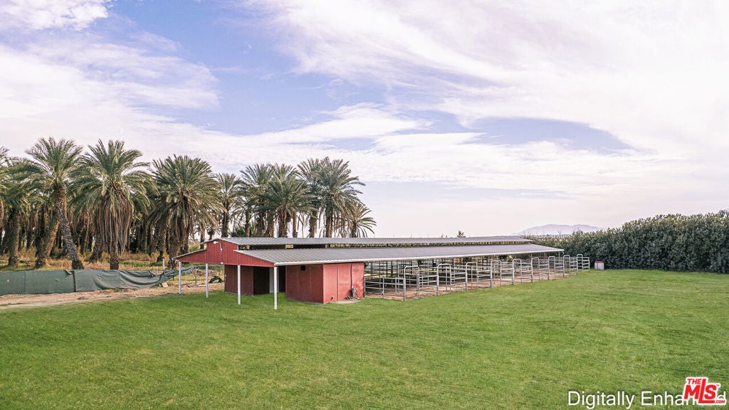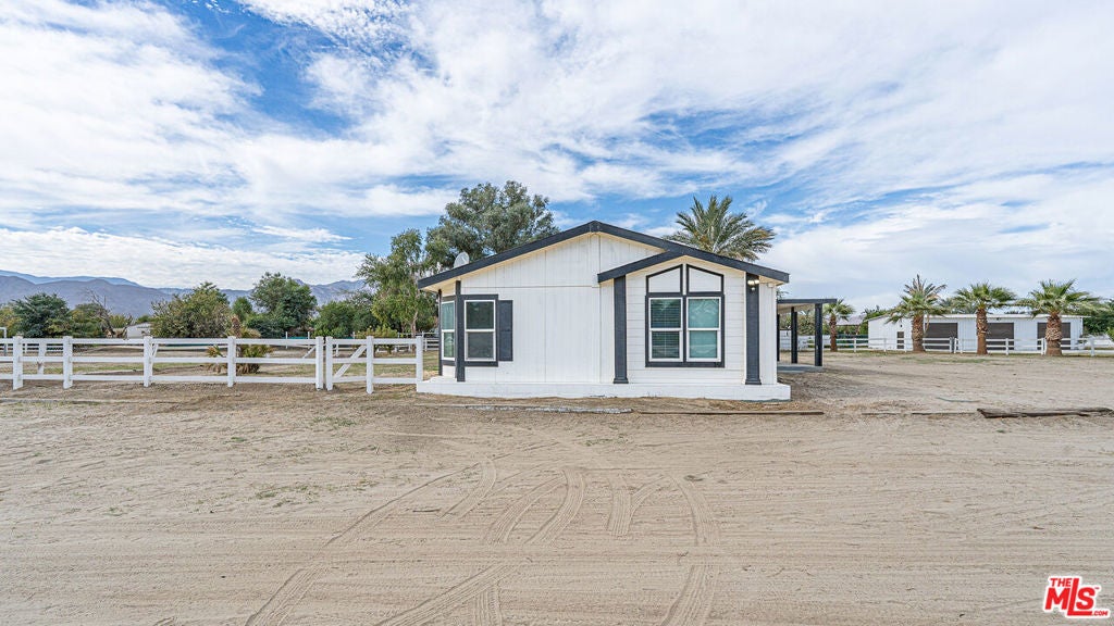 Beautiful gated 10-acre ranch backing up to Deer Creek Equestrian Center, featuring two professional barns offering a combined total of 40 oversized 12x24 stalls, covered stalls with misting systems, fans at each stall, wide center aisles, multiple fenced paddocks lining the entry drive, two large tack rooms per barn, an exercise track, a 3-stall maintenance shop, office trailer, and ranch-hand quarters. The fully permitted (433) manufactured home has been meticulously remodeled with an open floor plan, vaulted ceilings, wood floors, a stone fireplace, and a chef's kitchen with custom cabinets, Cambria counters, custom lighting, and stainless appliances. The primary suite includes a spacious walk-in closet, abundant natural light, and an upgraded bath with dual sinks and a large glass shower. Additional property features include a large well with strong water output, 5000-gallon water storage, two septic systems, city water availability, 62nd Street easement access, a concrete pad for a patio, an approx. 1,800 sq. ft. movable garage